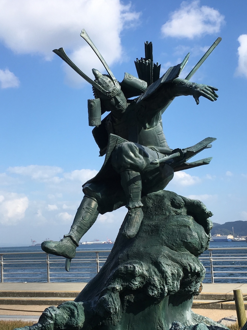 有名な源平合戦の終焉地壇ノ浦古戦場跡はみもすそ川公園内にあります。駐車場も完備されていて、義経と弁慶の銅像もありました。ここは海峡の1番狭まった場所で潮流が一番速い場所だそうです。また幕末の砲台のレプリカもありました。