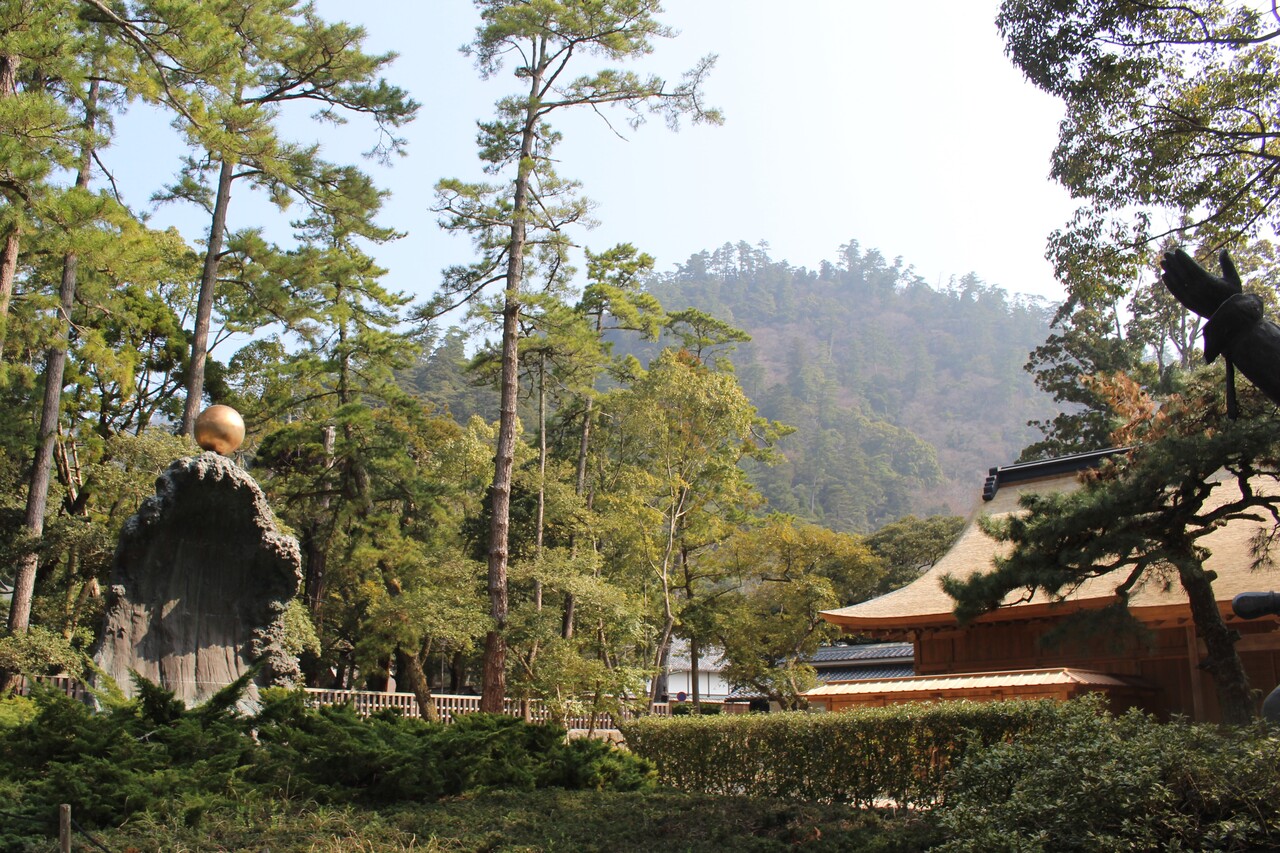 島根県の観光名所、出雲大社のなかにあるムスビの御神像です。大国主命のもとに海上を照らしながら近づいた神さまが幸魂奇魂を与えたシーンが再現されていました。神々のもとにスピリチュアルな気が、満ちていました。