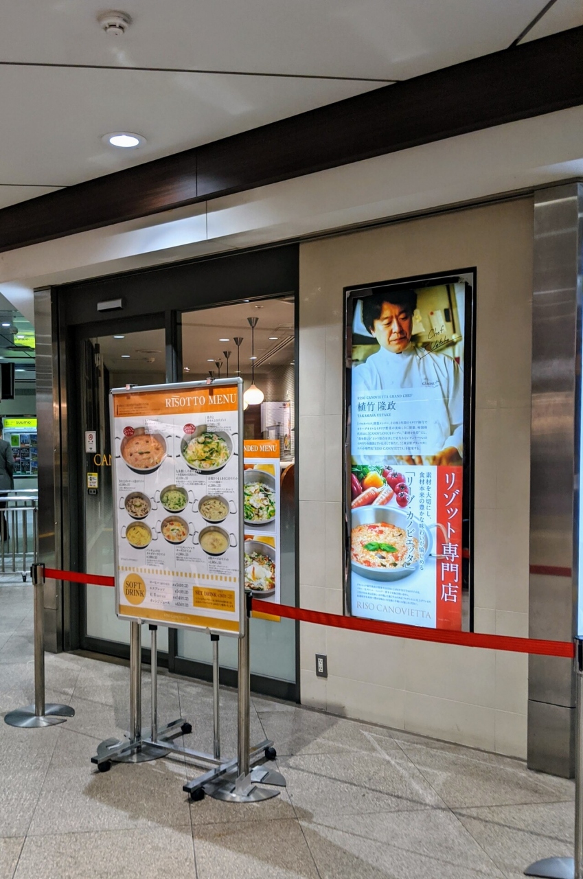 東京駅の八重洲地下改札口にあるリゾットの専門店です。改札内にあるため、JR線を利用する際に立ち寄ることができます。店内は、カウンターのみと狭いお店でしたが、混雑していました。トマトソース、チーズ、カルボナーラなどのリゾットがありました。チーズリゾットを食べましたが、濃厚なチーズで美味しかったです。