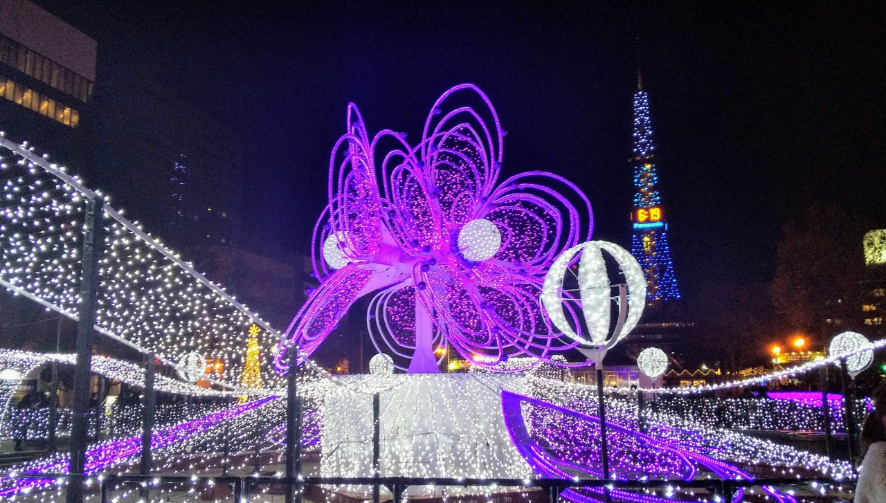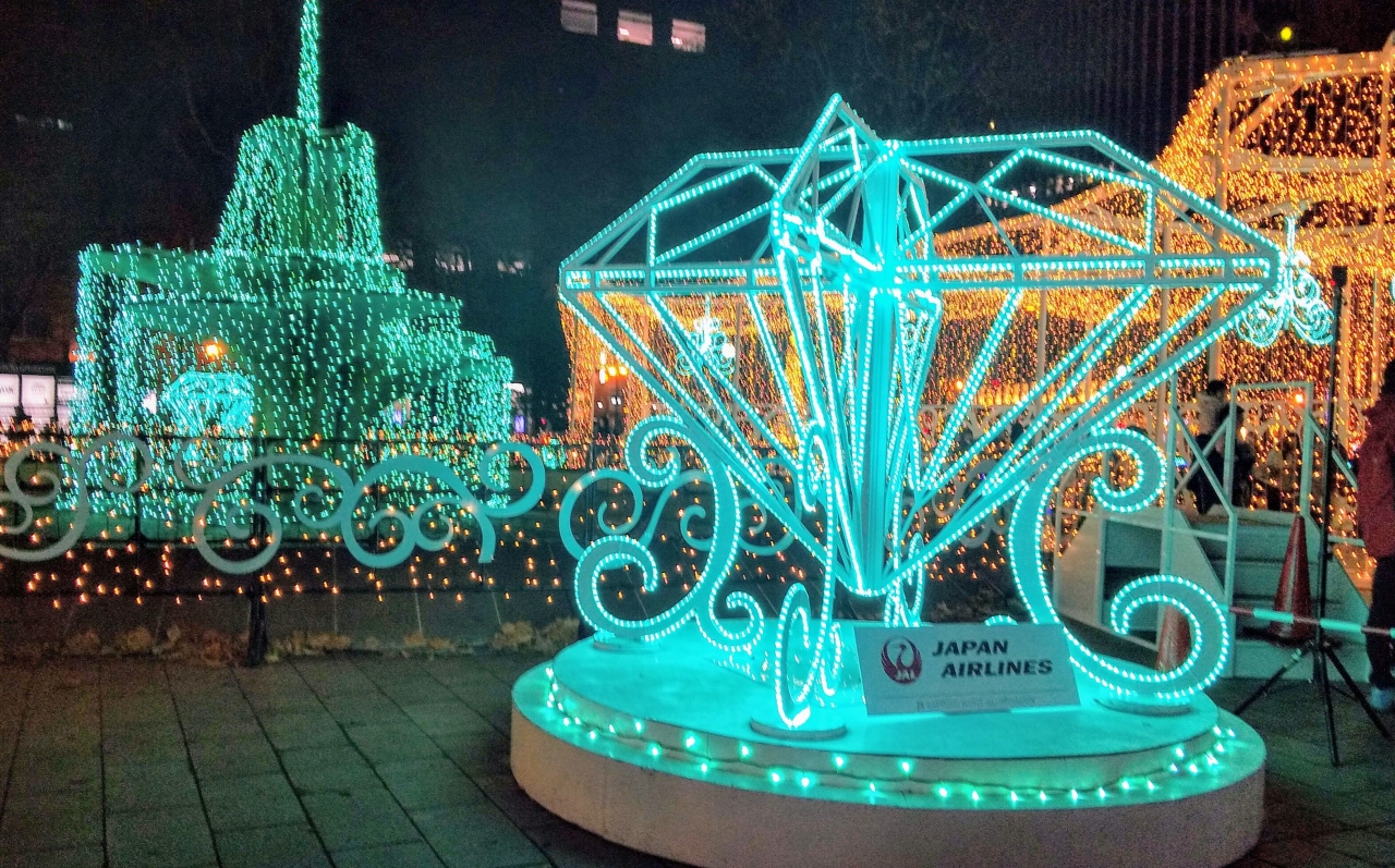 大通会場のイルミネーションは12月25日まで、そのあと 大通公園は冬の最大イベント「雪まつり」の準備に入ります。