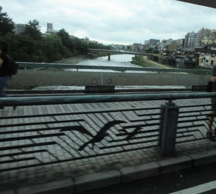 京都の鴨川を渡した橋の一つです。場所は四条通のところです。祇園や南座に近い場所で、繁華街を結んでいる場所なので、とても人通りが多い場所です。橋の上から鴨川はよく見えますし、川床なども見えます。川沿いを散策している人もいました。