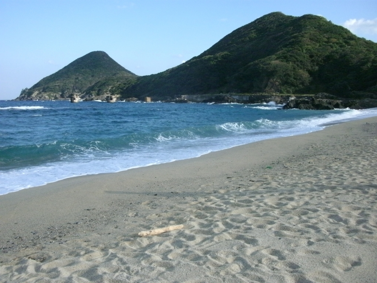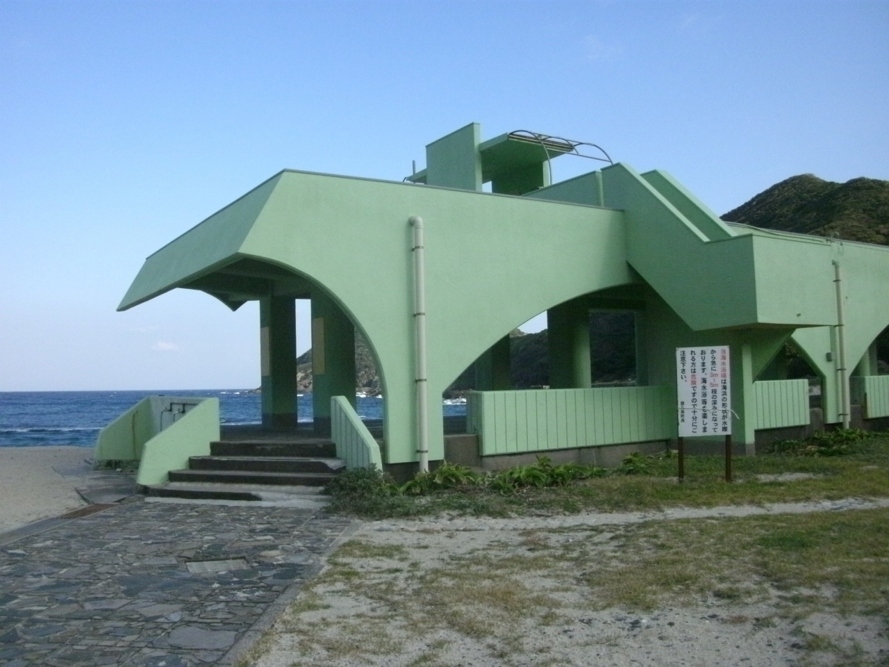 宮之浦港からバス車で15分ほど、屋久島最北端にある海水浴場です。水際から急に深くなっている様子が水の色の変化でよく判り、現地にあった注意書き(添付写真参照)にも「水際から数メートルで急に深くなっています十分に気負つけて下さい」とありました。尤も、屋久島のほとんどの海水浴場は遠浅でなく、急に深くなるところが多いです。
