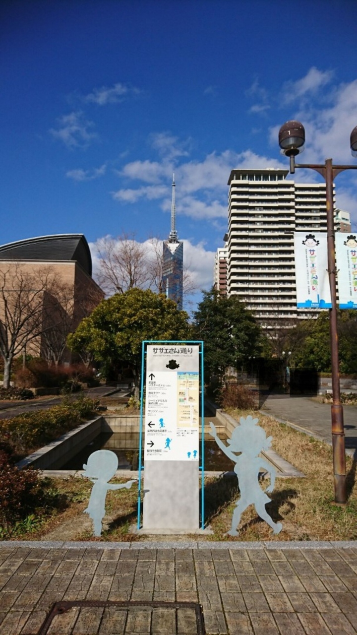 国民的アニメのサザエさん、その作者の長谷川町子さんが戦時中に過ごしたゆかりのある場所だそうで、博多湾の海岸を歩きながらサザエさんの登場人物を発案したそうです、東京にもサザエさん通りはありますがこちらのサザエさん通りは公園の中を歩いているような雰囲気なので散歩にもおすすめです。