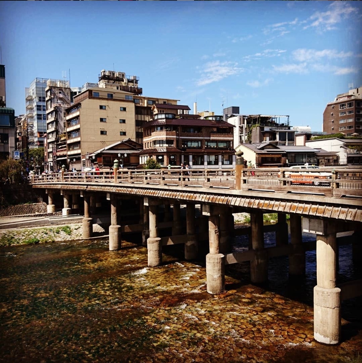 鴨川にかかっている三条大橋周辺はいかにも京都らしい光景が残されている場所です