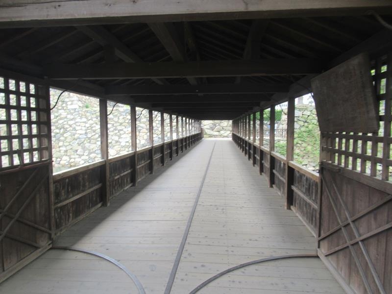 高松城の屋根の付いた立派な橋からはことでんも見えます