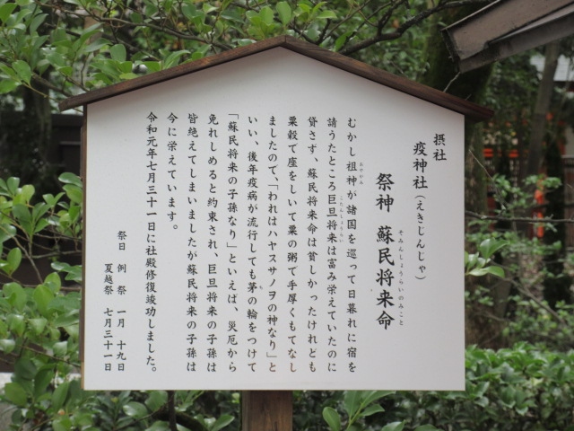 京都の八坂神社の境内にある神社で、場所は西からの入り口階段途中です。ちょっと人通りの多くごちゃごちゃした場所でした。昔の伝説で、貧しいながらも神様をもてなした人が、子々孫々疫病にもかからず無事に過ごせたことから、無病息災にご利益のある神社になったそう。冬と夏にお祭りもあって、祇園祭のフィナーレのゾーンでもある神社です。