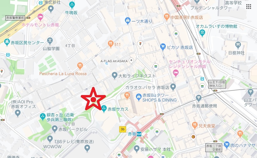 赤坂サカスの北側の崖の近くですので、赤坂の圓通寺坂通りの方向から、南に入ります。