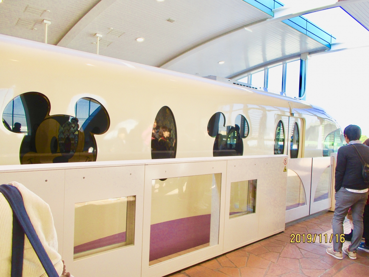 多分初めて乗ったのではないかと思います。JR舞浜駅を降りて、ディズニーシーに行くのに乗車しました。クリスマスも近いので、車内はクリスマスバージョンで、吊り輪が可愛くディスプレイされていて、ディズニーらしさが満載でした。