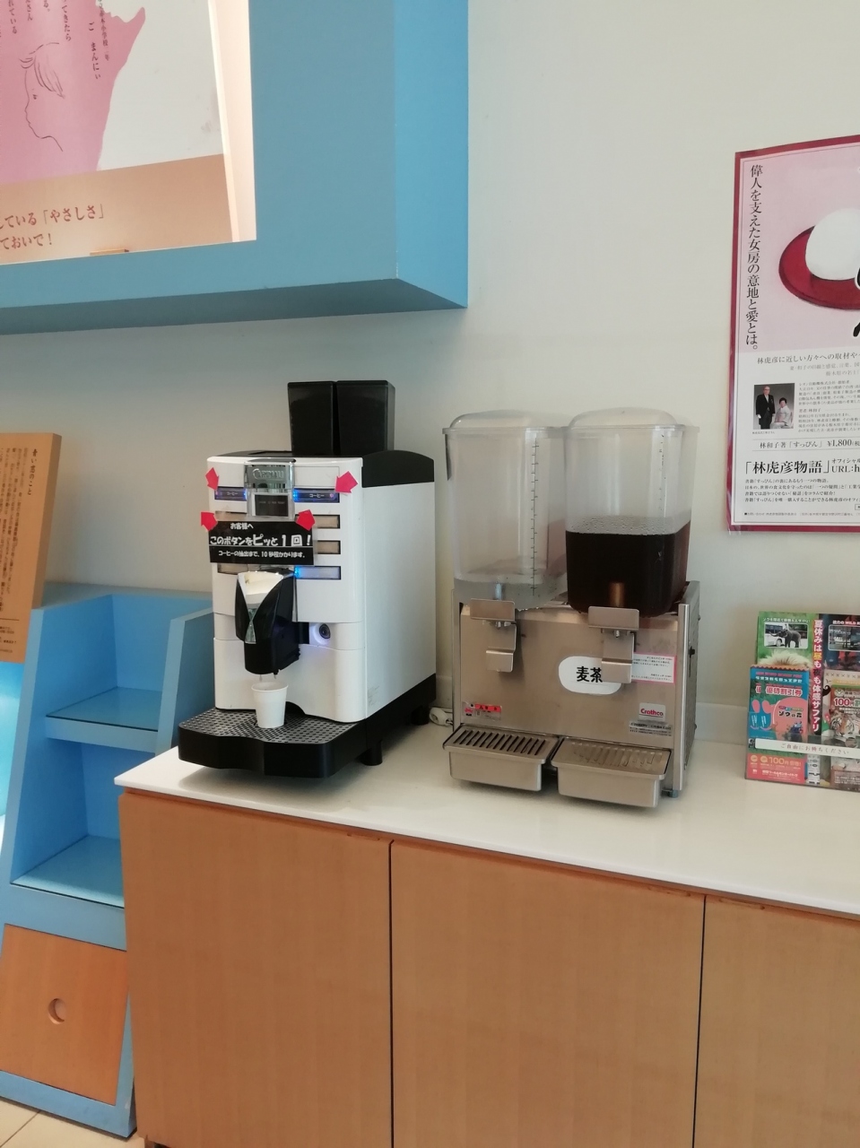 買い物をした後に、無料のお茶やコーヒーがセルフでいただけます。店内もとてもキレイでした。