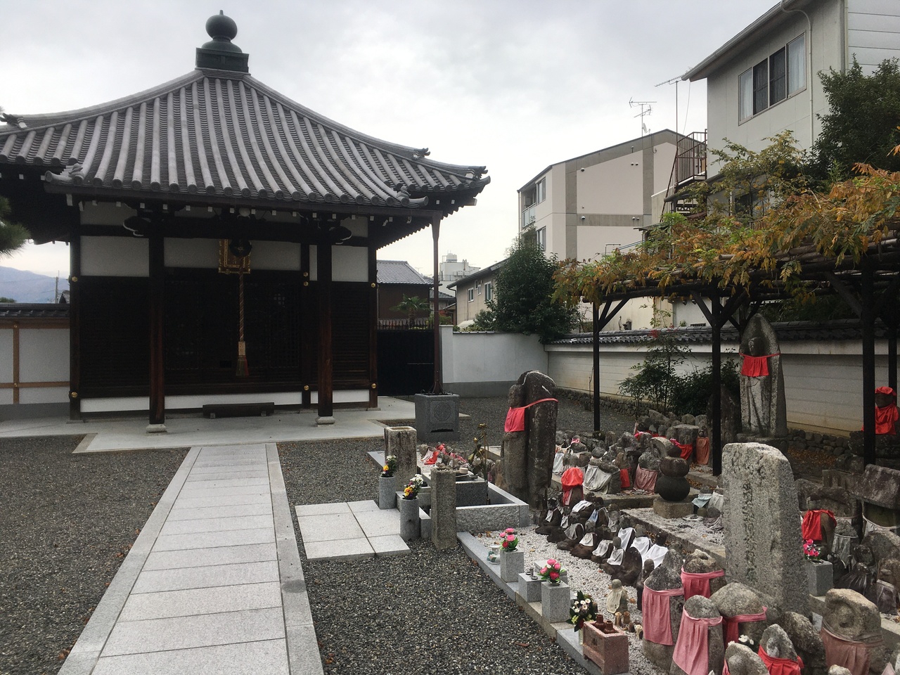京都市営地下鉄烏丸線「鞍馬口」駅から徒歩で東へ5分ほどのところにあります。門を入って右側の地蔵堂に小野篁が彫ったと言われる京都六地蔵の一つ、深泥池地蔵(鞍馬口地蔵)が祀ってあります。普段は人影があまりない静かなお寺ですが、8月の六地蔵参りの2日間は大勢の人がやってきます。