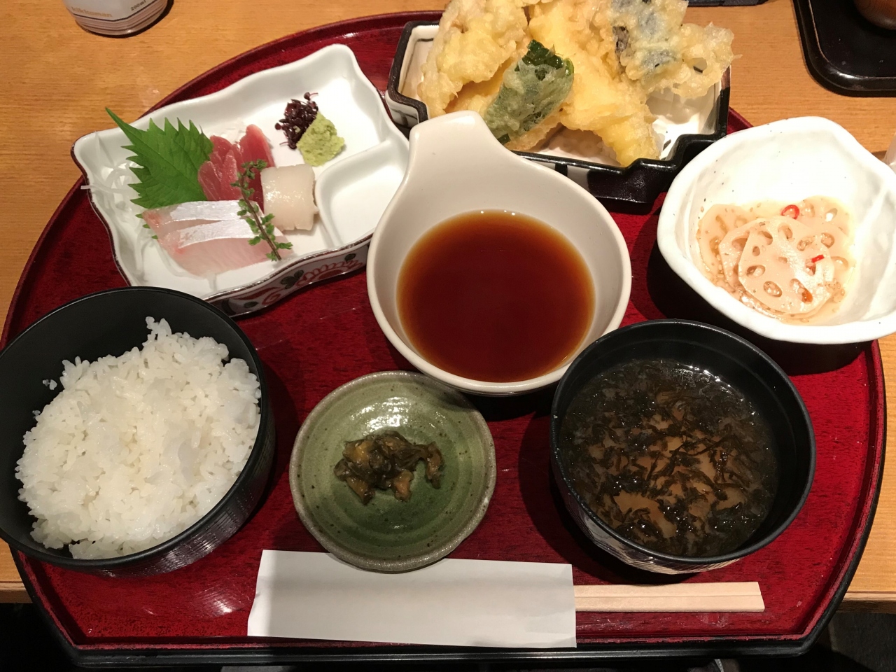 お味は天ぷらの衣が固かったりしてイマイチなところもあるのですが、お刺身と天ぷらのついた、いわゆる和定食的な「かよひ路御膳」が1738円(税込み)。上野駅の改札口至近という場所からみて、高過ぎずといったところでしょうか。