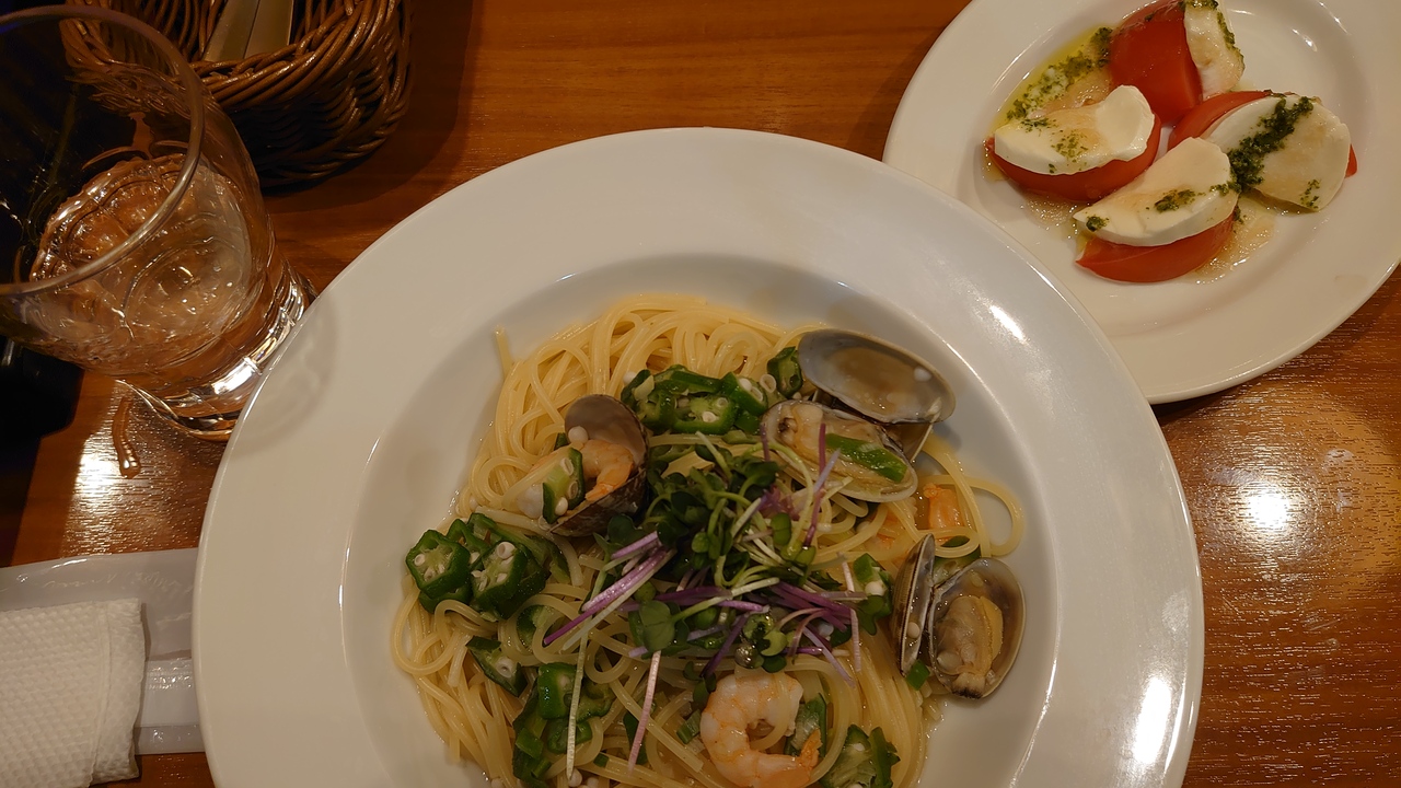 出張先の夕食で利用しました。レストラン街を歩くと、一人で入りやすい店が少なく選択肢がないなか、こちらは入りやすかったです。パスタのアサリは砂抜きが不十分でしたが、カプレーゼは普通においしかったです。チェーン店なので仕方ありません。