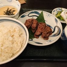 八重洲地下街にある、牛タンのチェーン店です。この界隈にはキッチンストリートやKITTE、グランスタの中などに色んな牛タンチェーン店がありますが、ここが一番コスパがいいと感じます。今回注文したのはがんこちゃんセット(¥1,200)。薄切りの牛タン6枚(12切)にテールスープ・とろろ・麦飯(お替わり自由)・味噌南蛮・漬物がついたセットです。牛タンは薄切りとはいえ、食べ応え十分な量がありました。他のおかずもご飯が進むものばかりなので、麦飯がお替わり自由なの嬉しいサービスです。