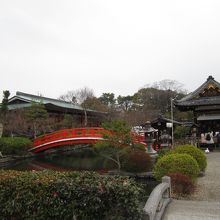 苑内のアヒルやハトは人懐っこく、特にアヒルは善女龍王社で参拝していても逃げずにまるで見守るように側にいます。池にはコイやカメもいてほのぼのした雰囲気です。