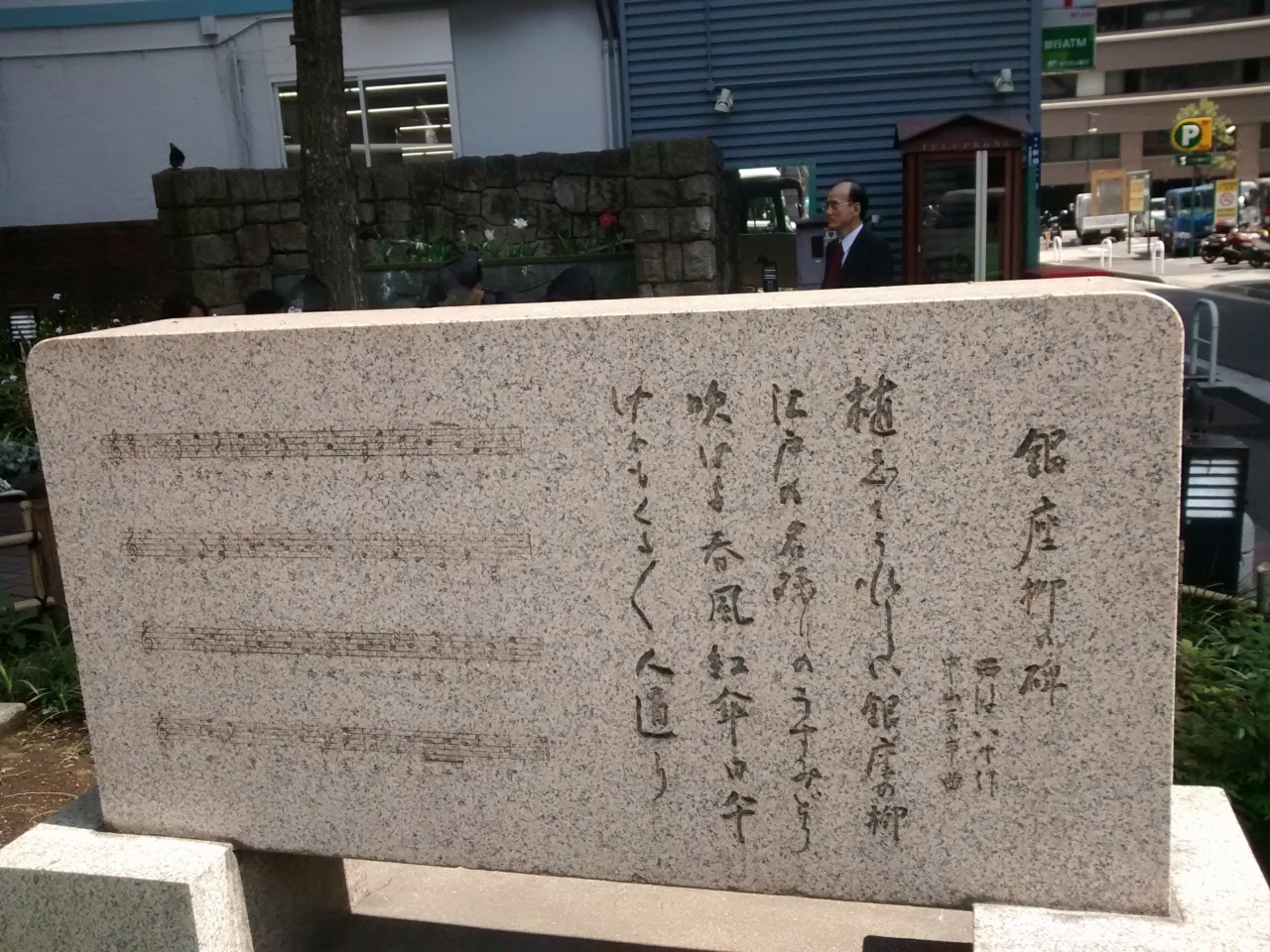 立派な石造りの銀座の柳の碑を見つけられて、感動
