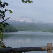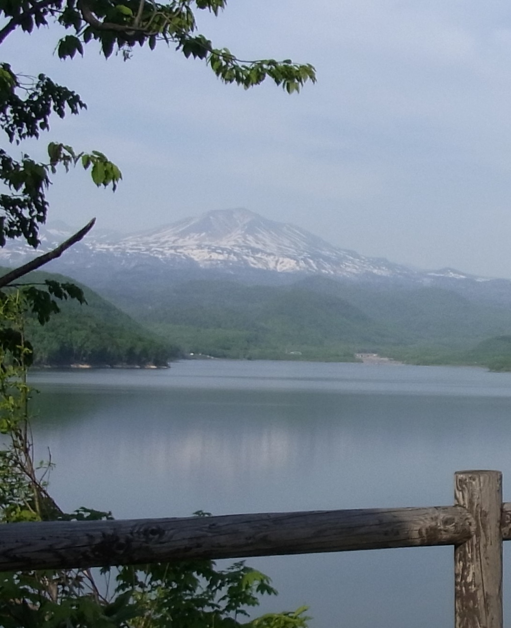 旭川から道道213号を天人峡方向へすすみ、トンネルを抜けると視界が開けて忠別ダム(忠別湖)が目に入ります。天気が良ければ、左手、湖面の背後に美しい旭岳が姿がのぞめます。湖畔沿いに駐車場は複数ありましたが、木の茂みで全く眺望を楽しめない場所もありました。