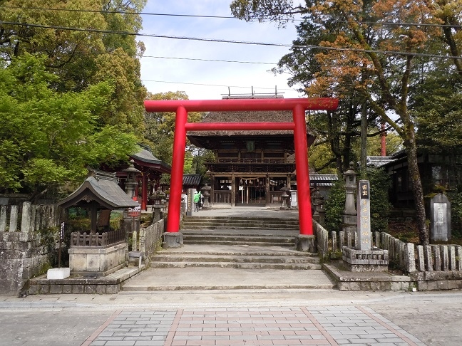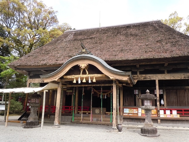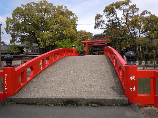 朱塗りの禊橋が目印になって分かりやすかったです。茅葺き屋根の迫力が予想以上で迫力がありました。平日だったせいか駐車場は混まず、場所も平坦な街中にあり、参道ではなく右側の道路から境内に車椅子で入れて助かりました。トイレもきれいなバリアフリーのトイレがありました。私は母の世話や旅行者に写真撮影を頼まれたりで、ご神木やさざれ石があった事に気付かずお参りだけになってしまいました。