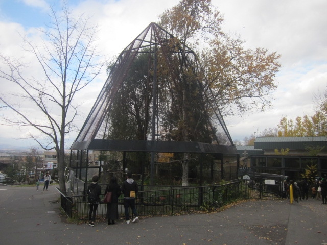 現在の旭山動物園においては、フクロウ・ミミズク類の殆どは、北海道産動物舎で見ることが出来ますが、独立した飼育舎として存在しているのがこちらのシマフクロウ舎と少し下方にあるシロフクロウ舎です。シマフクロウ舎は比較的新しくて大きな建物ですが、名前が似ているシロフクロウ舎に関しては、元タンチョウ舎だったところで、現在のより大きなタンチョウ舎が出来てから、タンチョウがそちらに移動し、空いた建物にシロフクロウが入居することになりました。