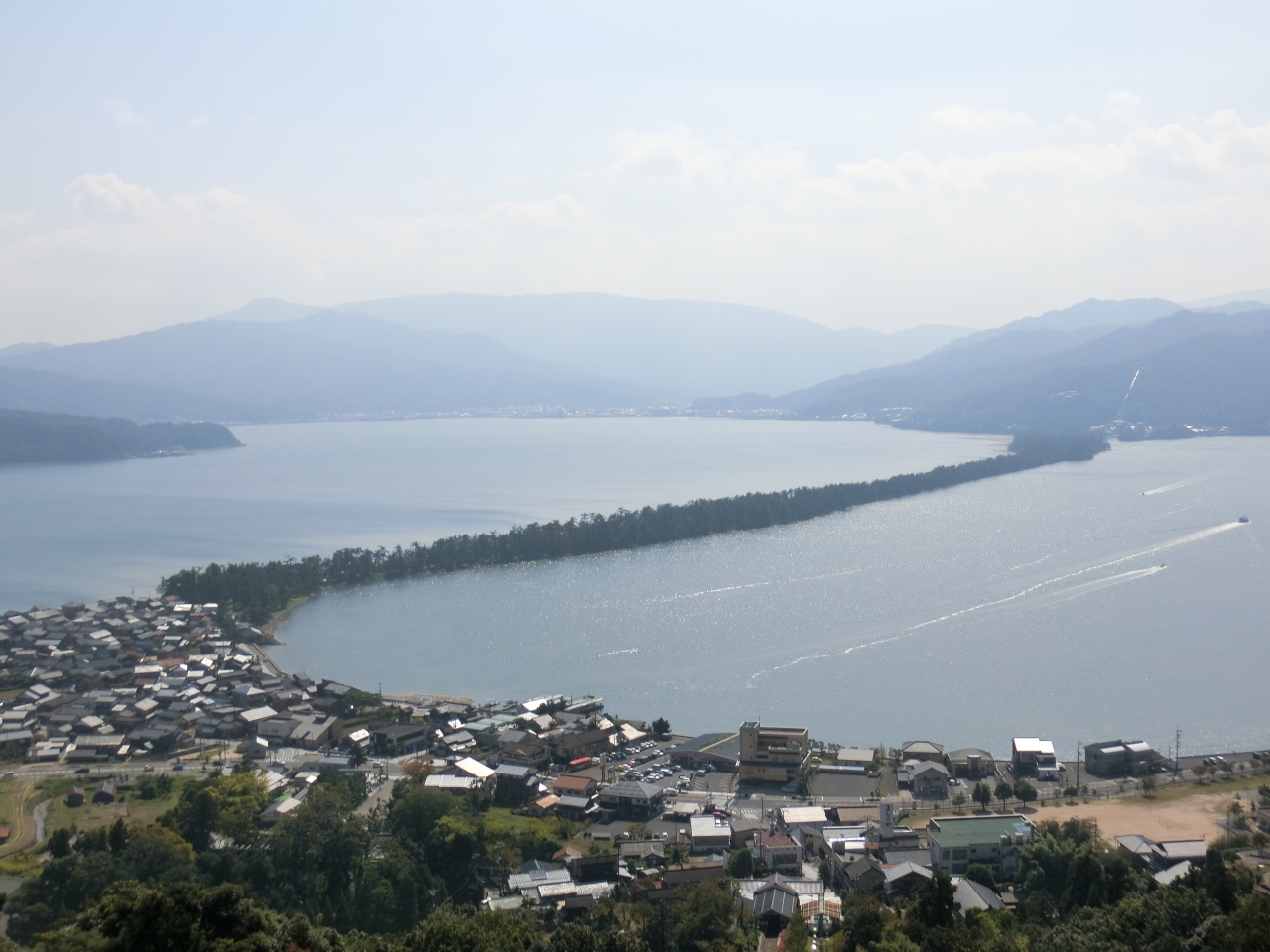 天橋立ビューランドから見る眺めは飛龍観と言い、これに対して対岸にある笠松公園から見るのは昇龍観。ここの展望台もケーブルカーで上っていかなくてはなりません。こちらは天橋立まるごとフリーパスは使えないので、700円でケーブルカーに乗りました。笠松公園から見る龍は一直線の形をしているので、天橋立ビューランドからの方が龍らしく見えます。
