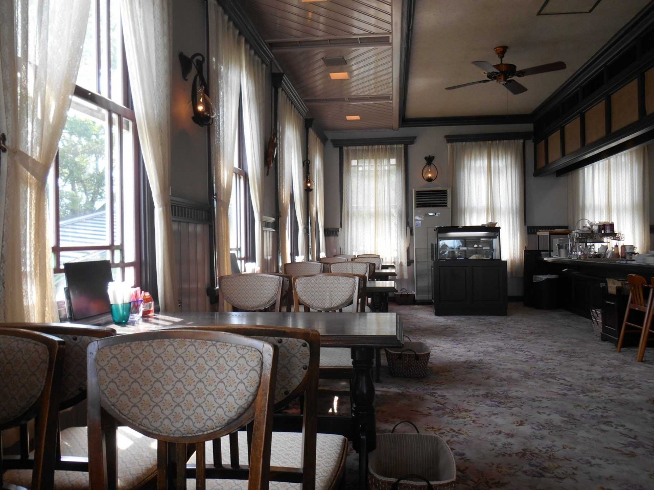 高い場所にあるので、屋外の眺めは良いですよ。その時に泊まった、ANAクラウンプラザホテル長崎グラバーヒルも良く見えます。店内はグラバー園にあるような昔ながらのおしゃれな空間です。