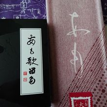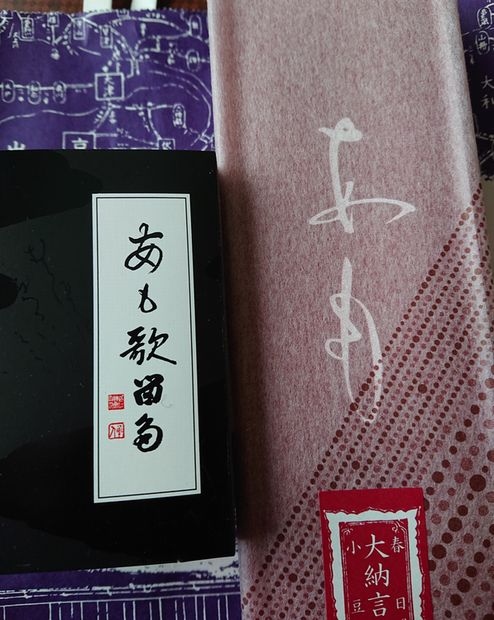 名古屋駅直結のジェイアール名古屋タカシマヤの地下1階にある店舗です。今回は「あも」を購入しに行きましたら、最近新しく出た「あも歌留多」に挟んだあもを試食でいただきました。パリとしていて香ばしく、また違ったあもが楽しめ、早速お茶請けに購入しました。百人一首がデザインされていて、これからの時期の手土産としてもお勧めです。
