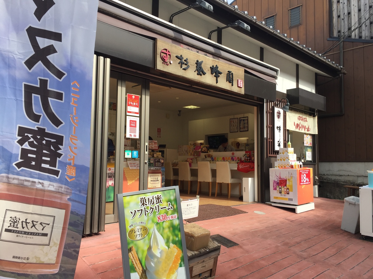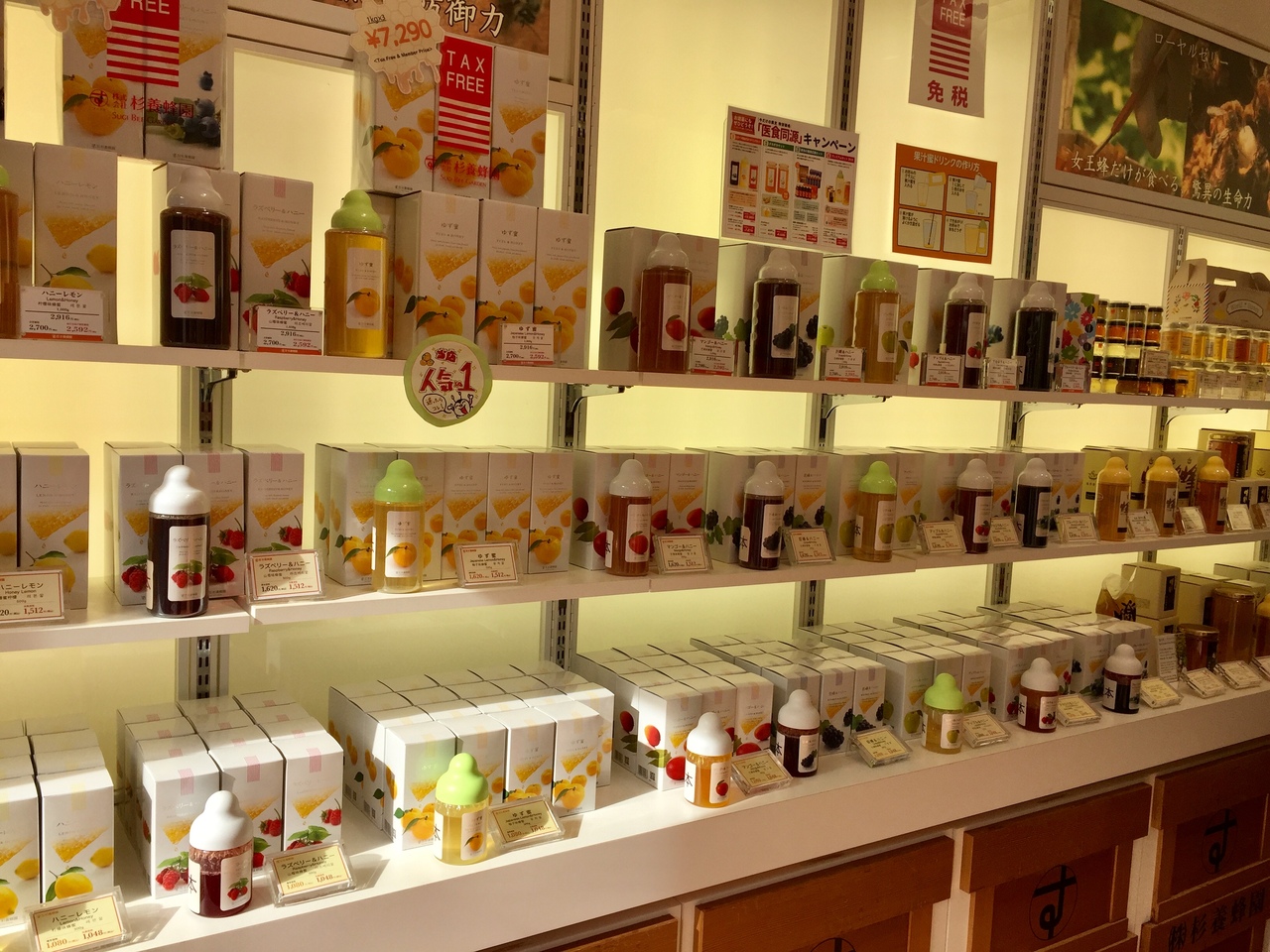 店前で果汁入り蜂蜜の「ゆず蜜」の試飲を店員さんがおすすめしてくれました。店内でほかの種類も試飲ができるということで、アセロラ、マンゴー、アップル、レモンなどそれぞれにとても美味しかったです。