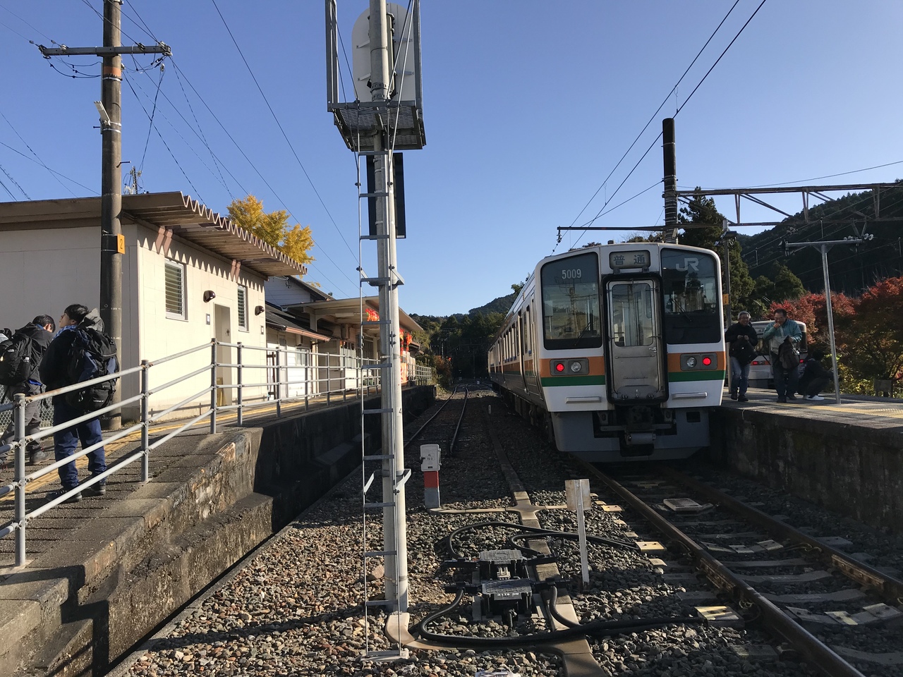 鳳来寺山の紅葉ウォーキングで下車。