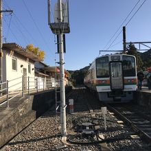 一面二線の電車行き違いの駅。