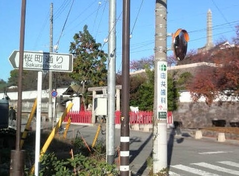 赤い柵で囲われた中に小さな石鳥居と拝殿などがあるだけの簡素な神社で、元々は城内の北東部にあったものを移転したとのこと。