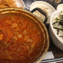 辛さが丁度良く、キムチや豚肉たっぷりで美味しいキムチチゲでした。