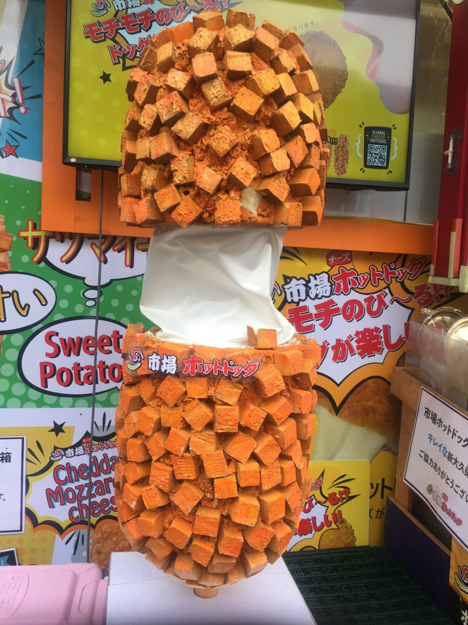 入り口を入ると、キンパやチーズドックなどたくさんの韓国料理の屋台がありました。
