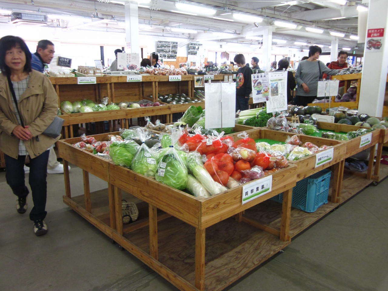 館内は観光物産館と呼ばれる一般的な農産物直売所(JA)が広いスペースを取り、周辺の農家から出荷された色々な野菜や果物がところ狭しと並べられていました。