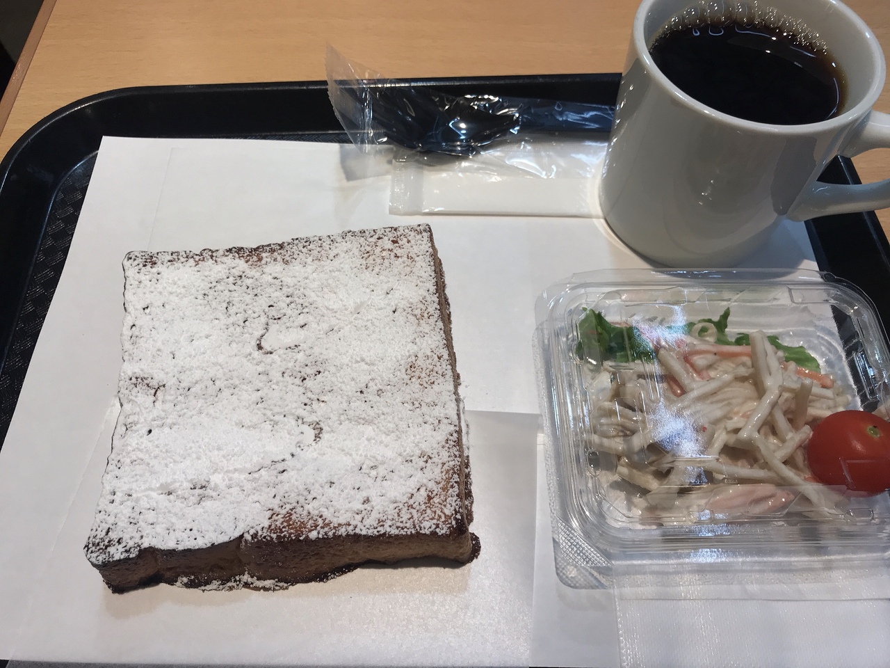 大阪マラソン応援のスタート前の時間潰しに利用しました。イートインの場合には先に席を確保しておく決まりです。プリオッシュが有名らしいです。フレンチトーストとコーヒーを頼んだらサラダ付きのモーニングセットを勧められました。
