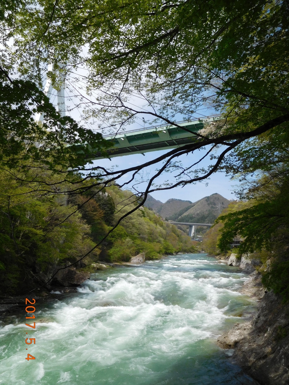 ちょうどこの諏訪峡大橋の下あたり、利根川の水流が荒々しくマイナスイオンたっぷり。