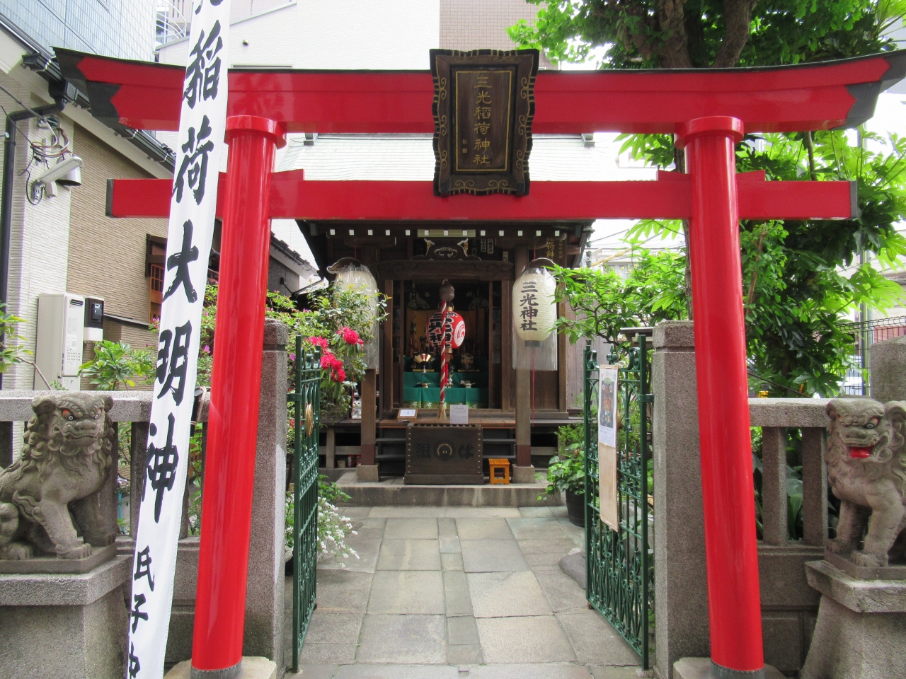 人形町駅からすぐの場所にある三光稲荷神社ですが、