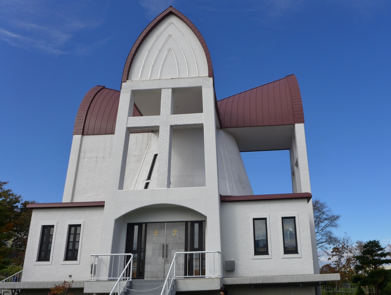 他の教会と違って、こちらはの建物は昭和54年(1979年)の完成とのこと、比較的新しい建築のせいかデザインのせいなのか、どこか冷たい印象を受けました。
