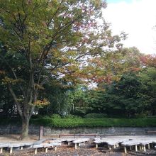 花壇、広場、野外音楽堂などあり、緑もあるので、