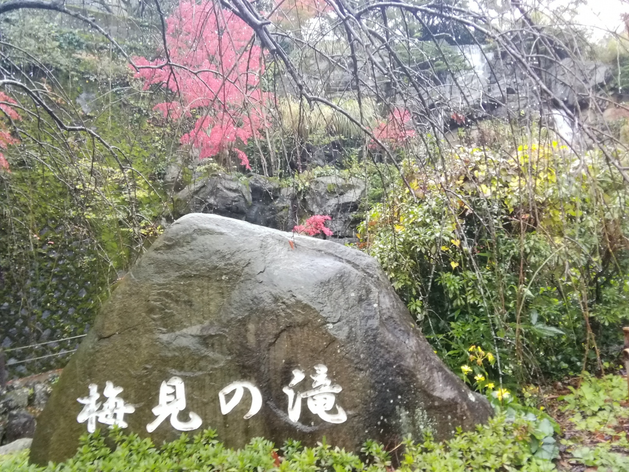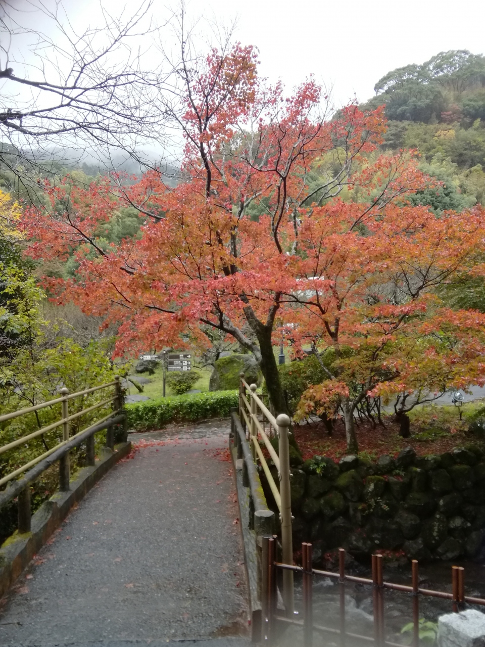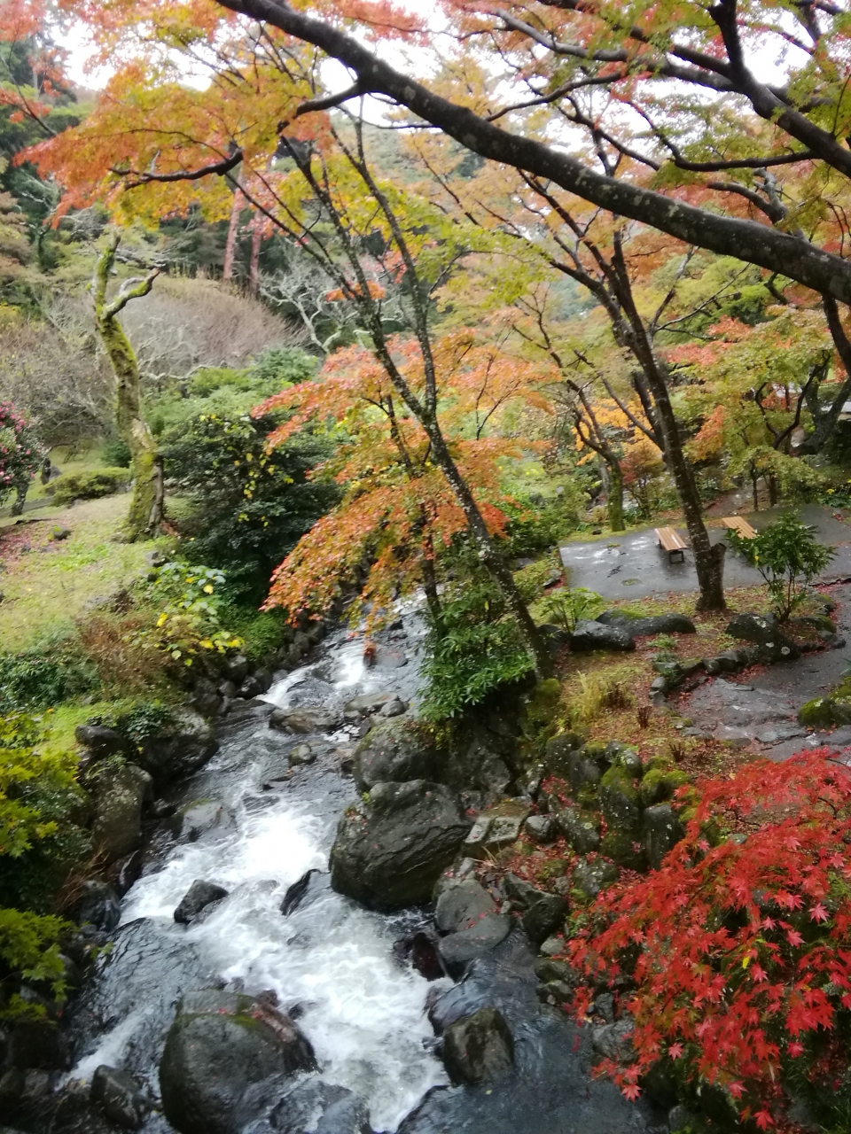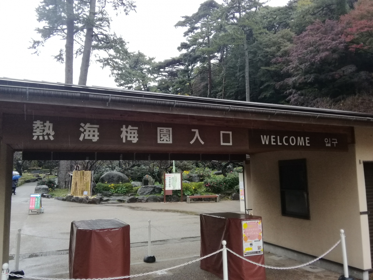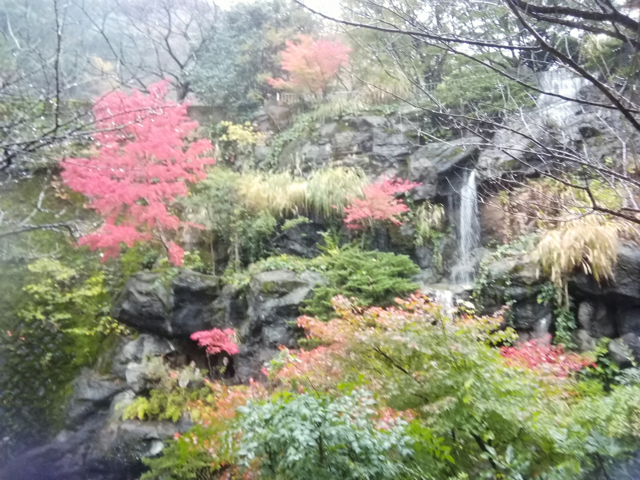 熱海中心街から車で15分程度の熱海梅園に行ってきました。この時期は色鮮やかなもみじが見頃です。園内は無料ですが、駐車場料金が300円かかります。正面入口を入ると竹灯籠のオブジェが設置され、その横の坂道を登っていきます。園内を初川という小川が流れており、橋を渡ると梅見の滝と呼ばれる滝があり、裏見の滝にもなっています。梅の時期もいいですが、この時期のもみじの庭園も素晴らしいと思います。