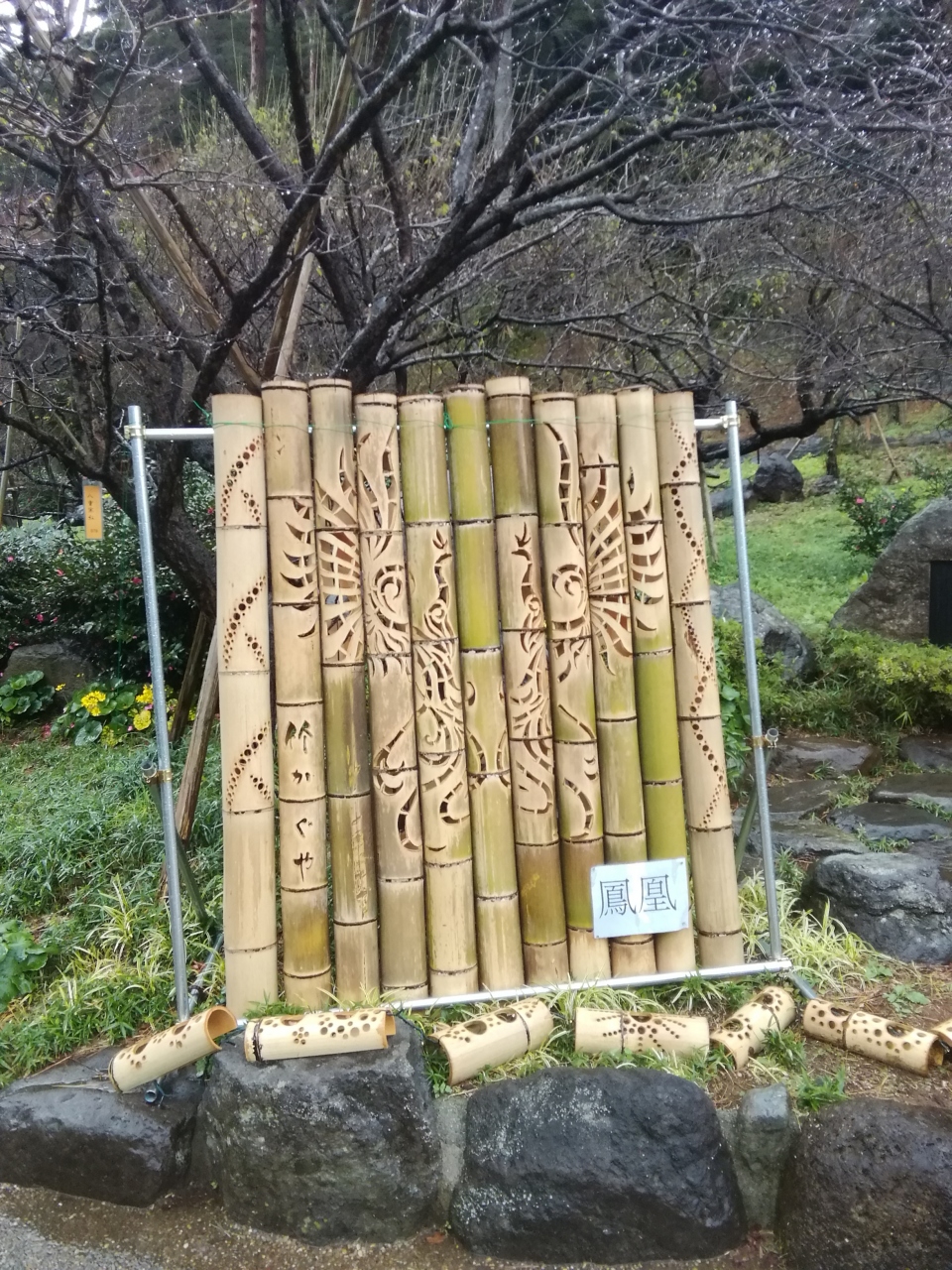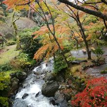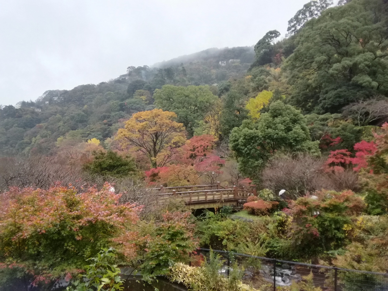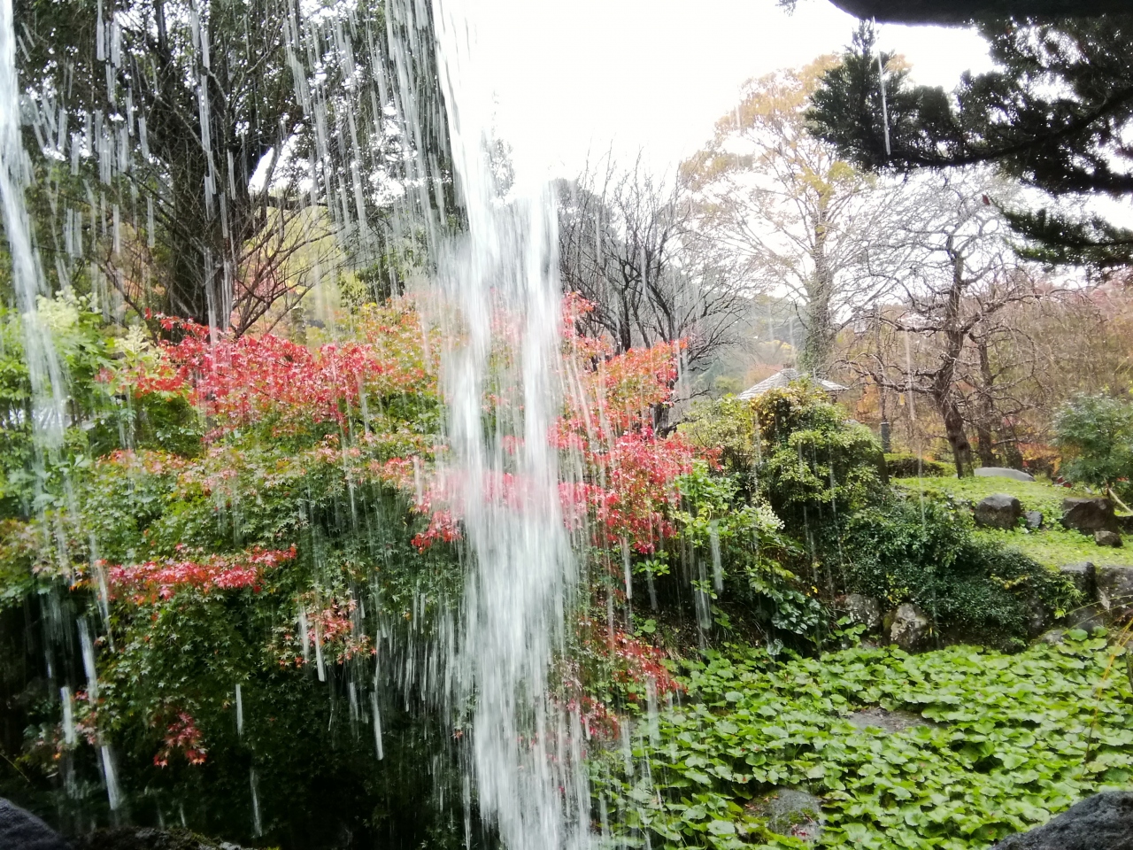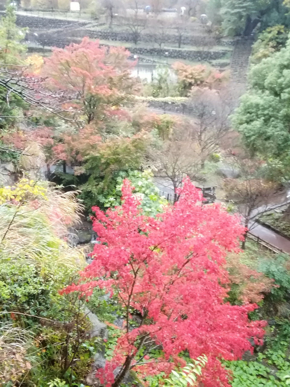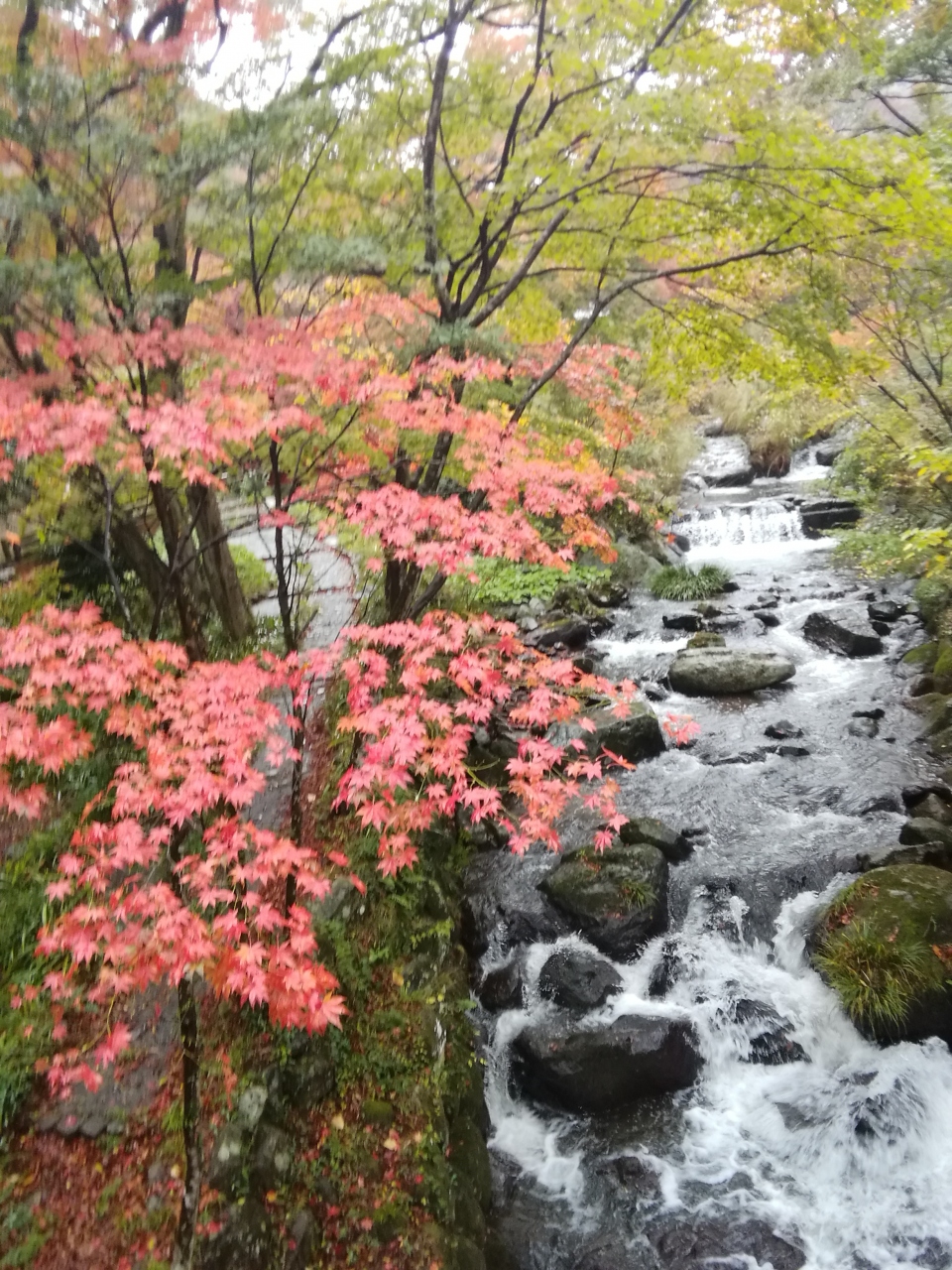 熱海中心街から車で15分程度の熱海梅園に行ってきました。この時期は色鮮やかなもみじが見頃です。園内は無料ですが、駐車場料金が300円かかります。正面入口を入ると竹灯籠のオブジェが設置され、その横の坂道を登っていきます。園内を初川という小川が流れており、橋を渡ると梅見の滝と呼ばれる滝があり、裏見の滝にもなっています。梅の時期もいいですが、この時期のもみじの庭園も素晴らしいと思います。