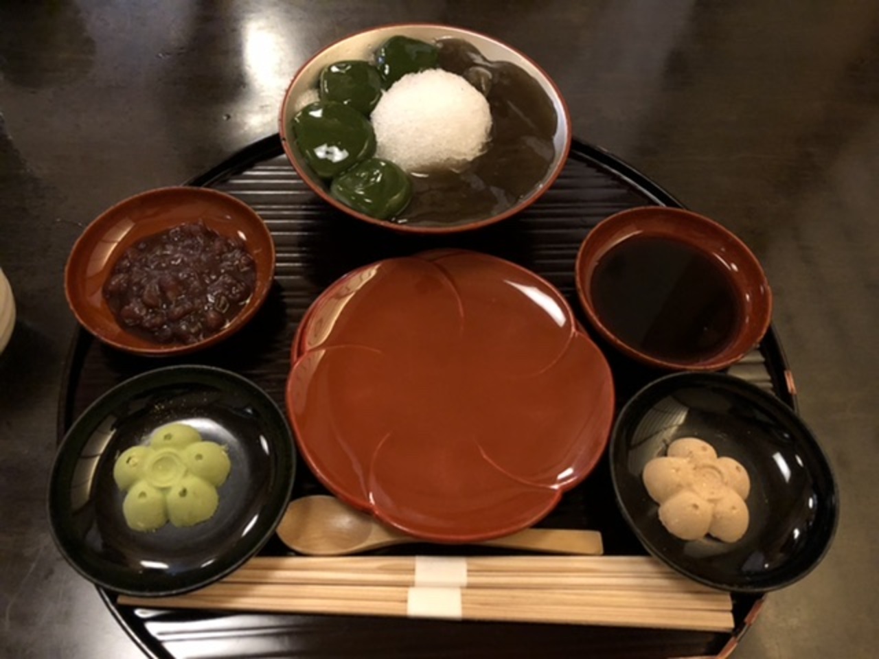 前回は妙に暑い日で、カキ氷にしたのですが、今回は本わらびもちと抹茶のくずもちのあいもりにしました。葛餅も良いけれど、柔らかくて伸びるわらびもちは出色!でも次もあいもりにしそう。