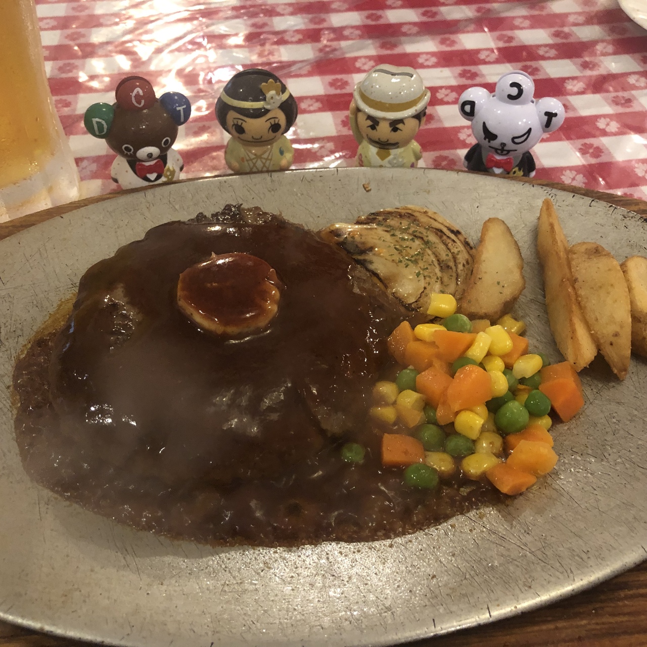 テーブルクロスや照明など、とても懐かしい感じの洋食屋さんです。ハンバーグがおいしいとのことで、注文しました。ハンバーグは、席に運ばれてきてから、自分でソースをかけるのですが、熱々のプレートからジュワワワー!と音がして、とてもいい感じでした。