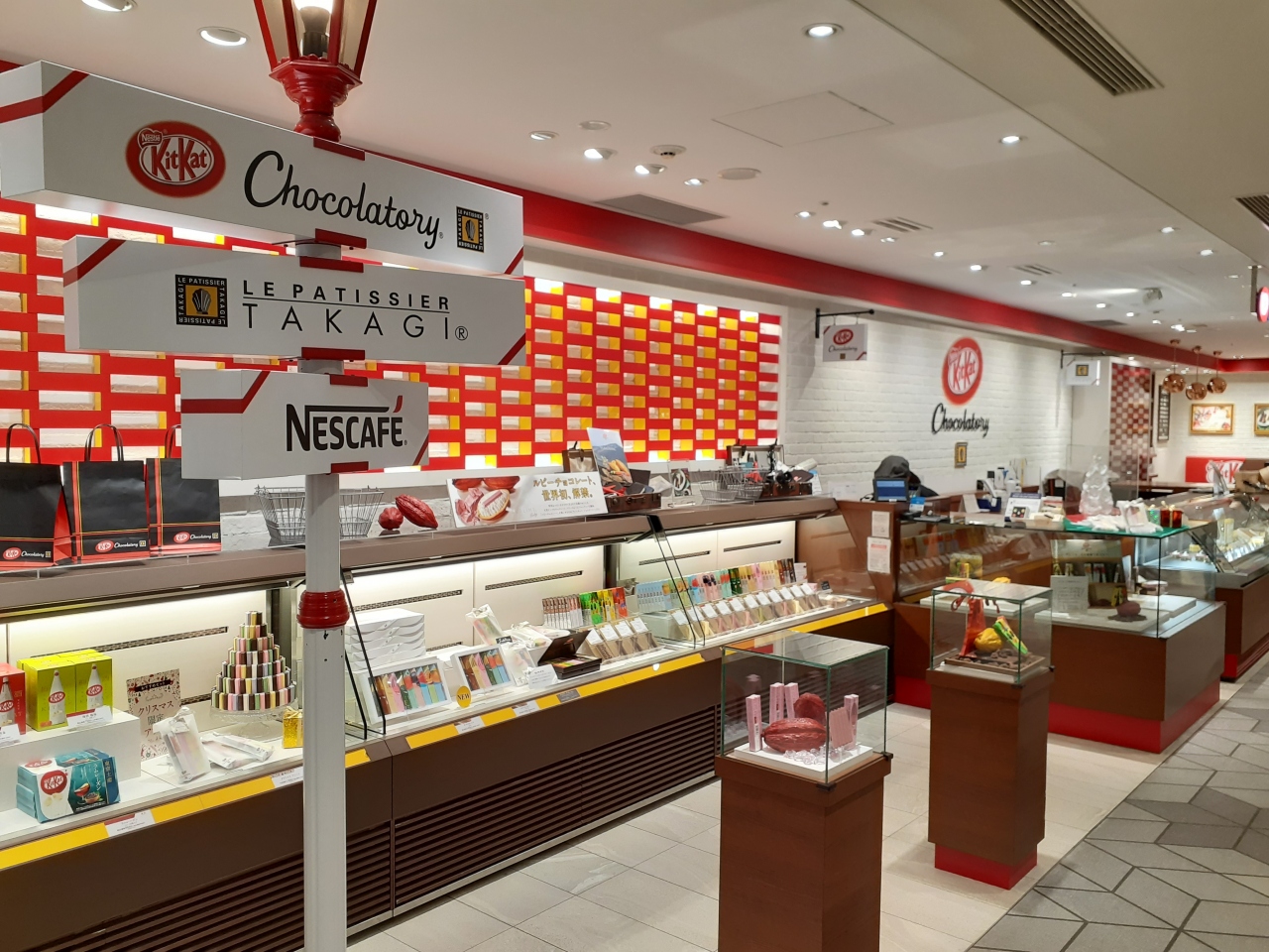 こちらは、「キットカット ショコラトリー」「ル パティシエ タカギ」「ネスカフェ」の3つが並んでいます。カフェ併設のショコラトリーは、全国でも数店舗なので貴重です。