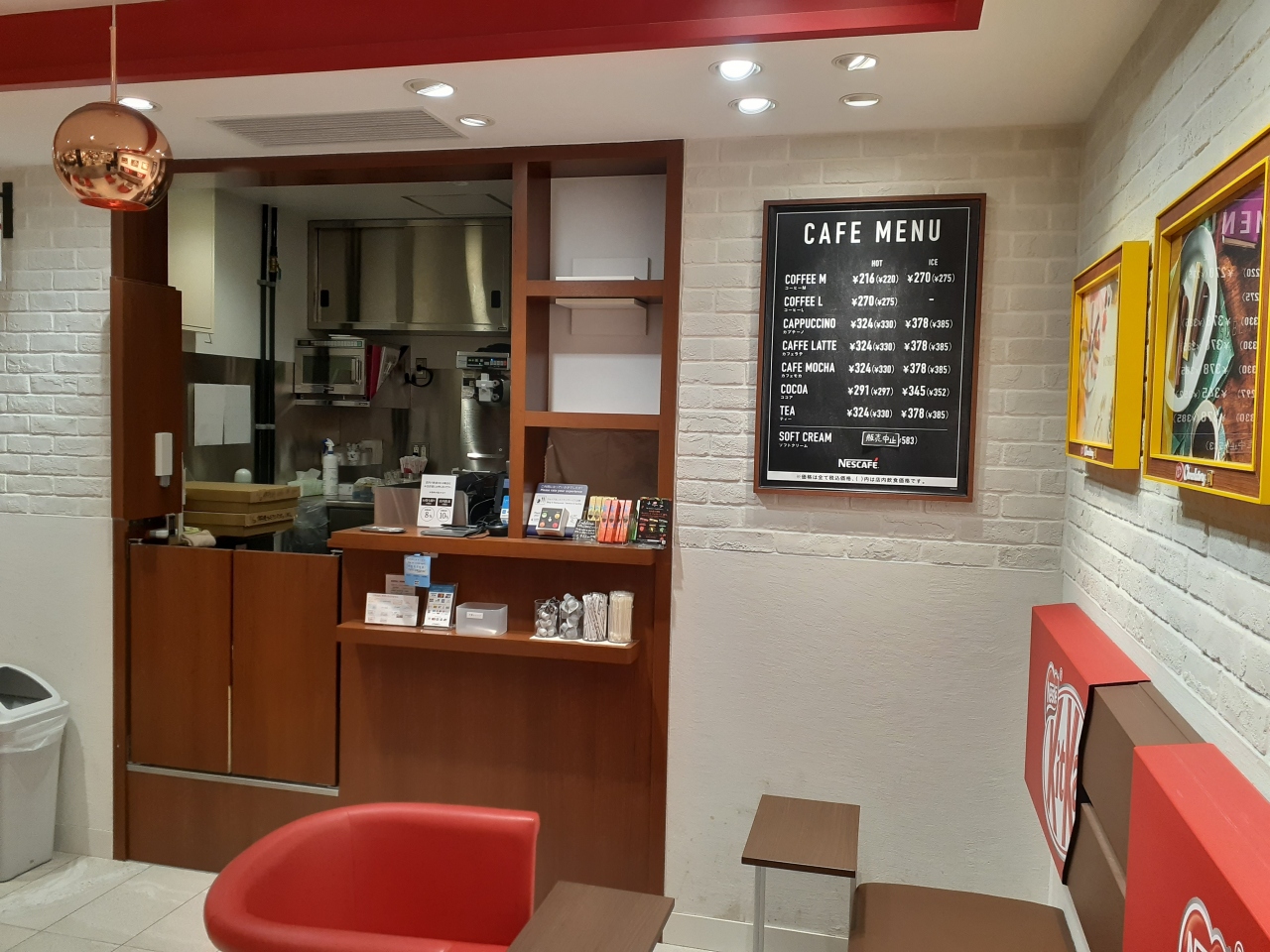 「ネスカフェ」のイスやテーブルは、ブランドカラーに合わせた、オシャレな造りです。