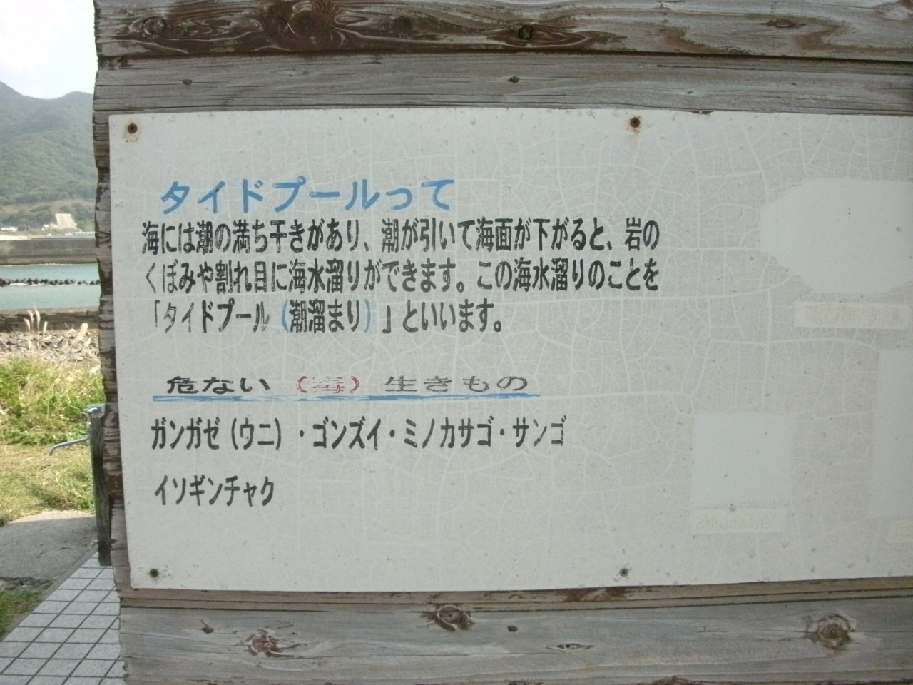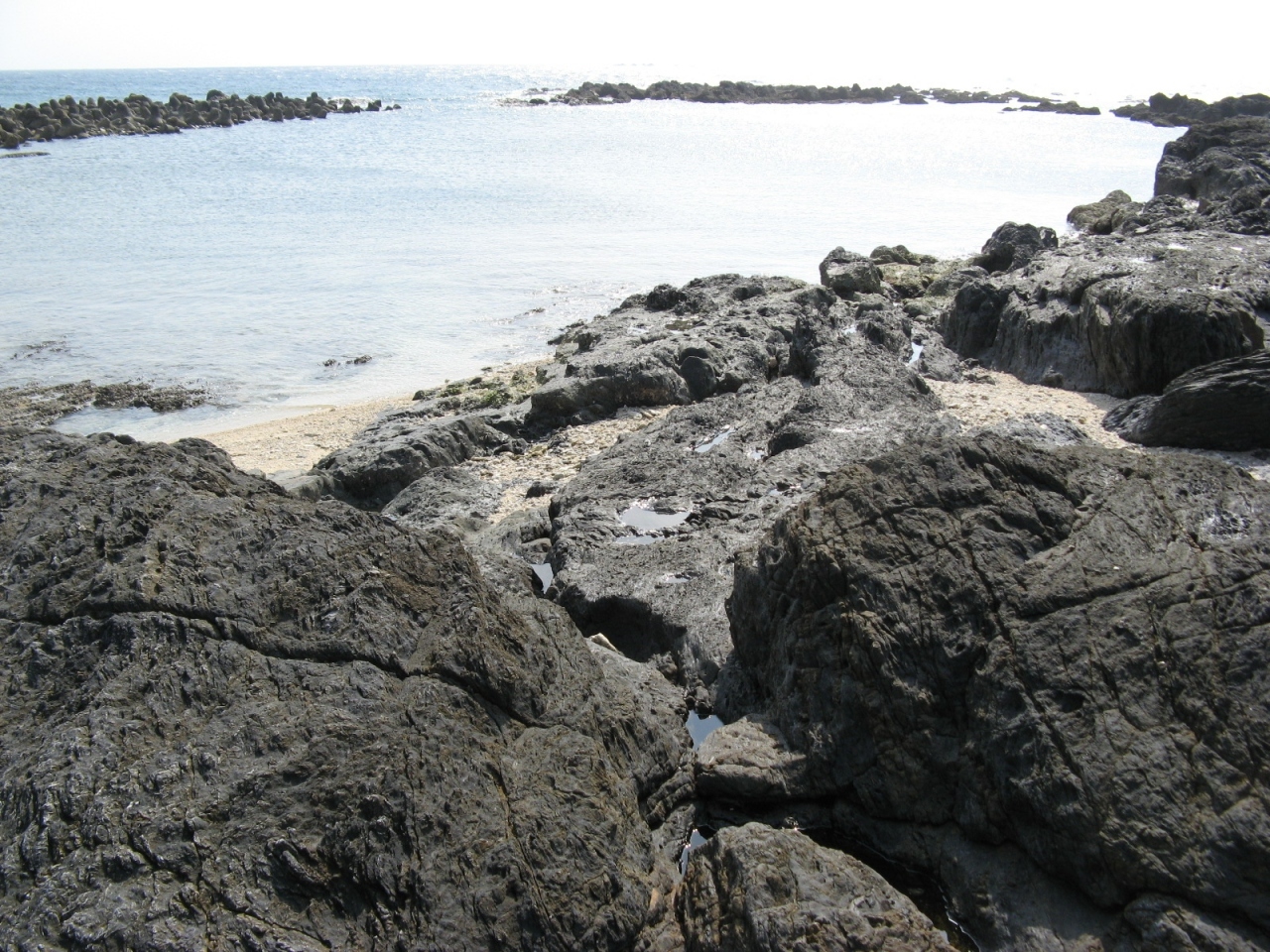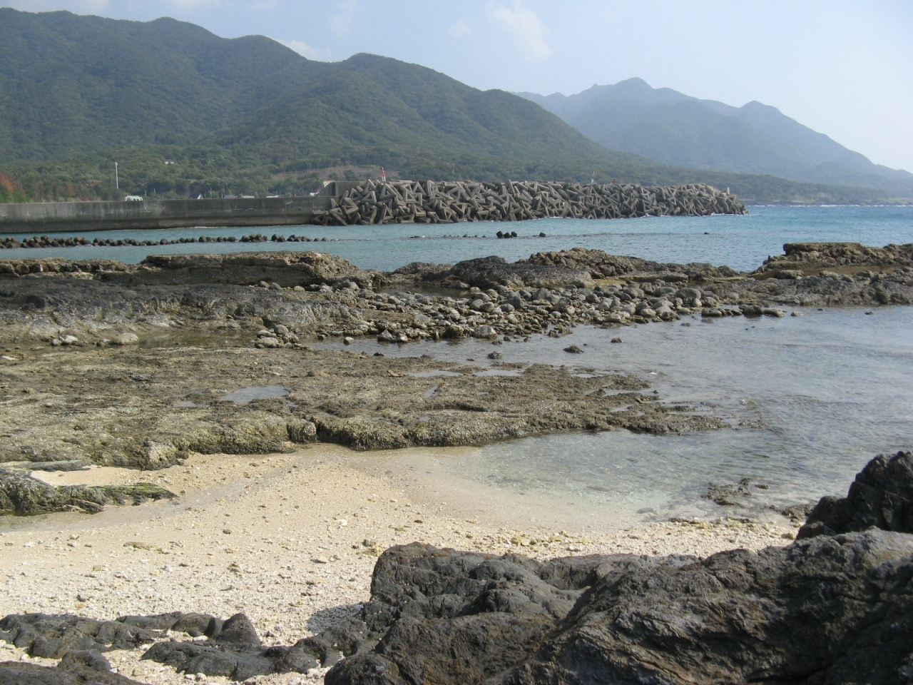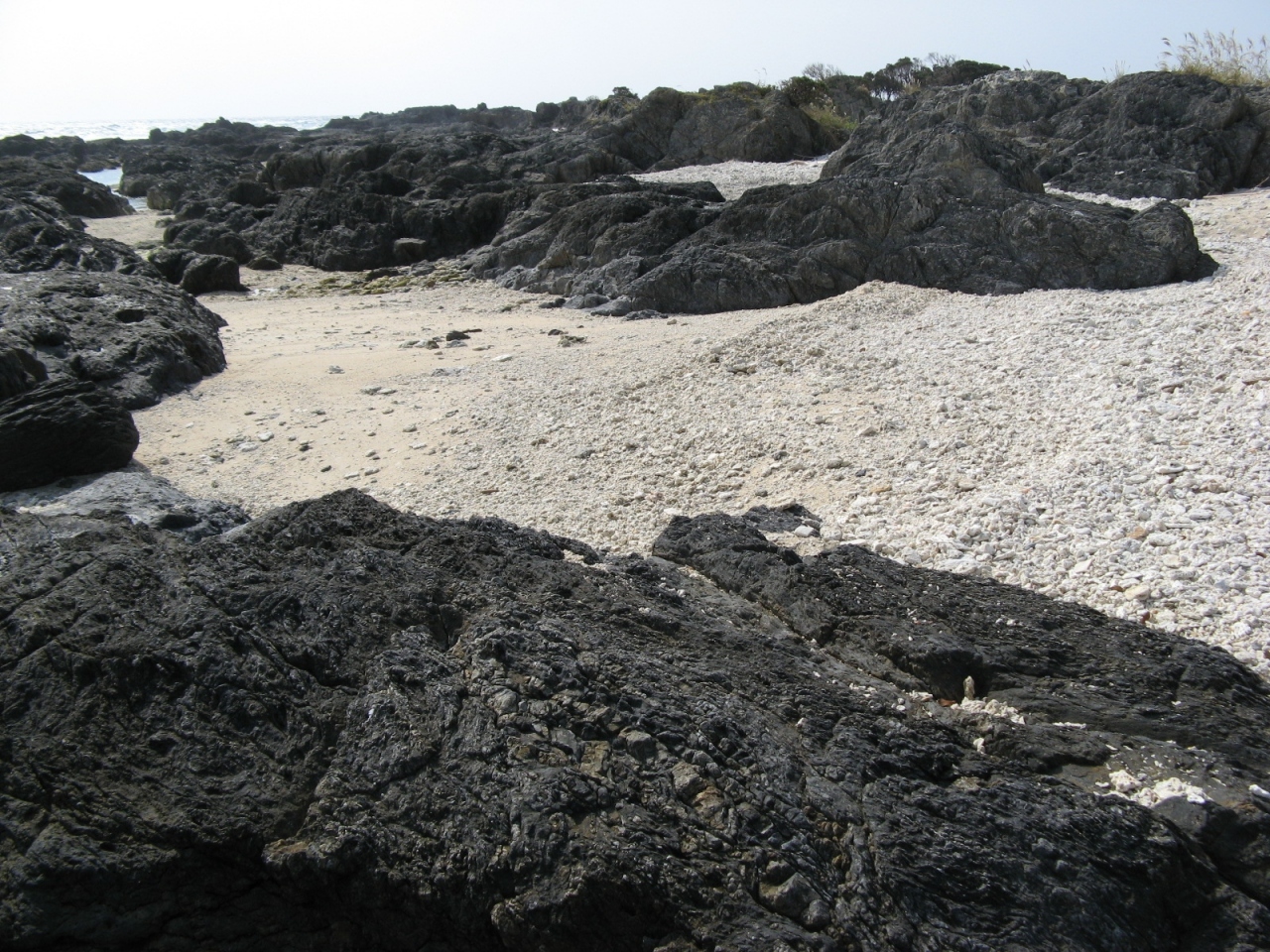 永田集落から西部林道(県道78号線)を南下、栗生集落の手前に「塚崎タイドプール」という標識があり、それに従ってに右折、屋久島青少年旅行村やパンガローを過ぎた突き当りに駐車場とトイレがあります。プールと言っても泳ぐ施設ではなく、潮が引いた時に現れる潮だまり(タイドプール)です。