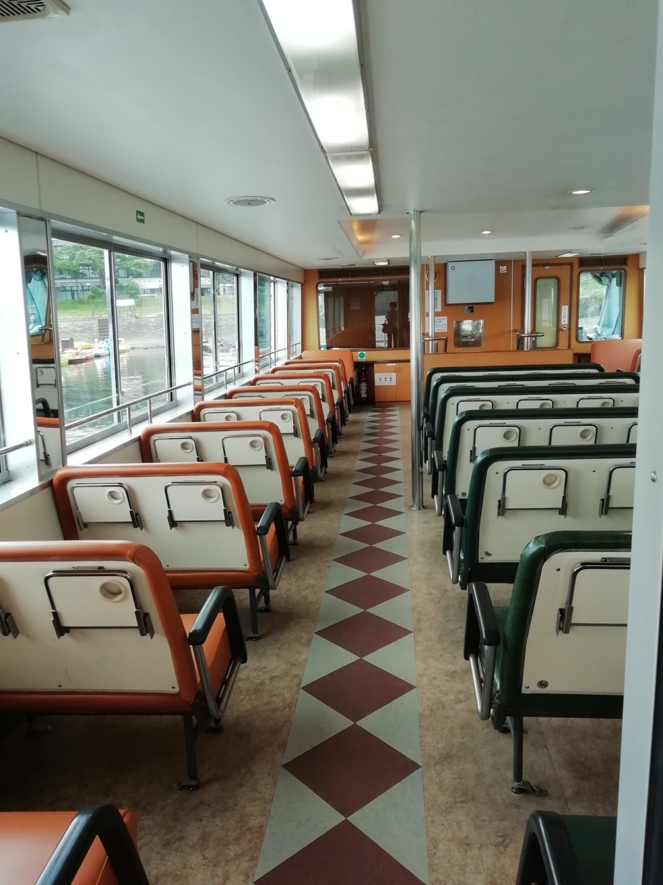 思っていたより大きな湖で、小さな島が点在しているので眺めも変化に富み楽しめました。デッキにいると、スピーカーから湖の歴史などの説明が流れますが、音が風に流され全く内容が聞き取れなかったのが残念でした。