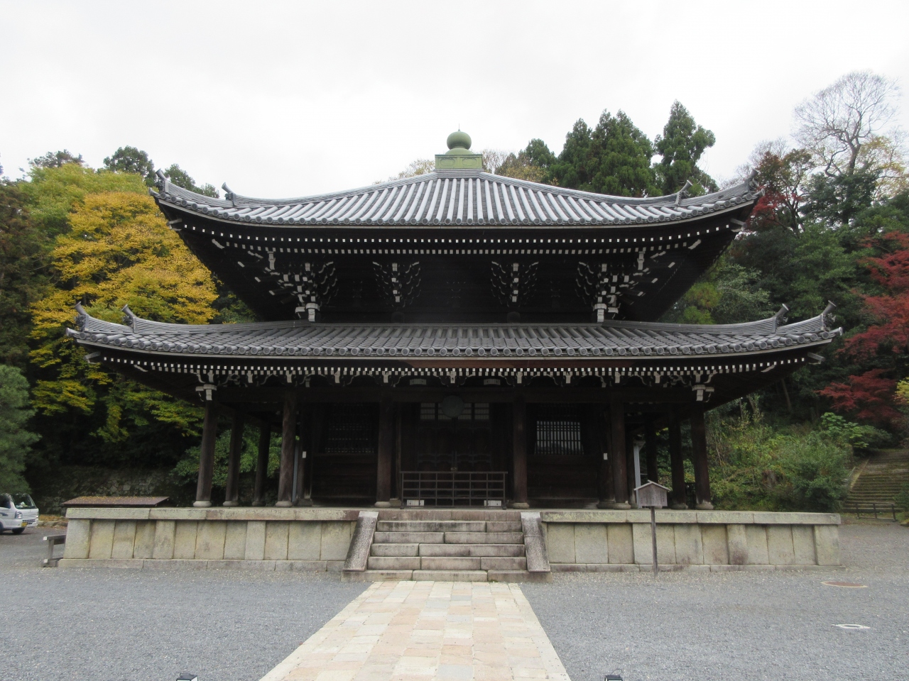 知恩院の御影堂向かいに建つ、二層屋根のお堂です。歴史あるお堂ですが、明治の終わりに再建された比較的新しいお堂で、得度式や道場に用いられるとのことです。立派なお堂ですが、参拝客は向かいにある大きな御影堂に目を奪われ、あまり注目されないかわいそうなお堂です。東京の浅草や谷中のお寺に建っていれば、多くの人が訪れるであろう立派なお堂です。