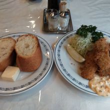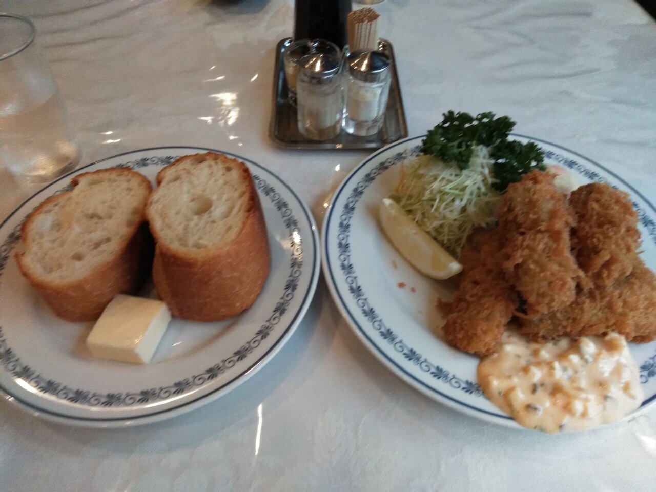 冬季限定でカキフライ2,500円を頼んだら、ご飯かパンは別料金300円。