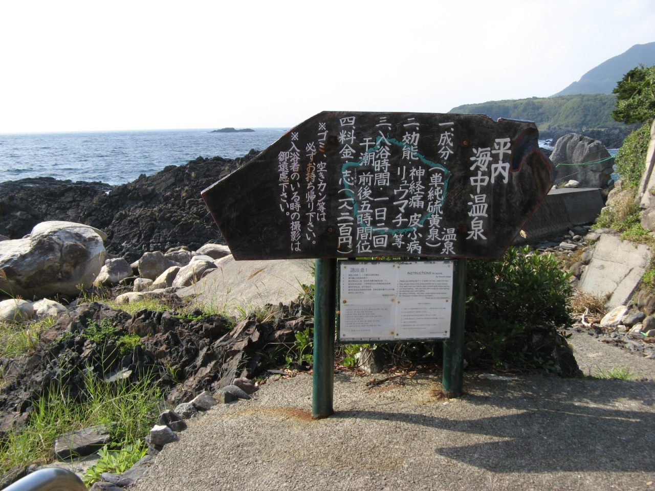 屋久島の南西部の平内集落の外れ、磯の中から湧き出ている温泉です。海面下にあるため、一日二回の干潮前後の5時間しか入れるチャンスが無いので事前に干潮時間を調べていきました。