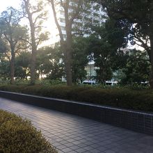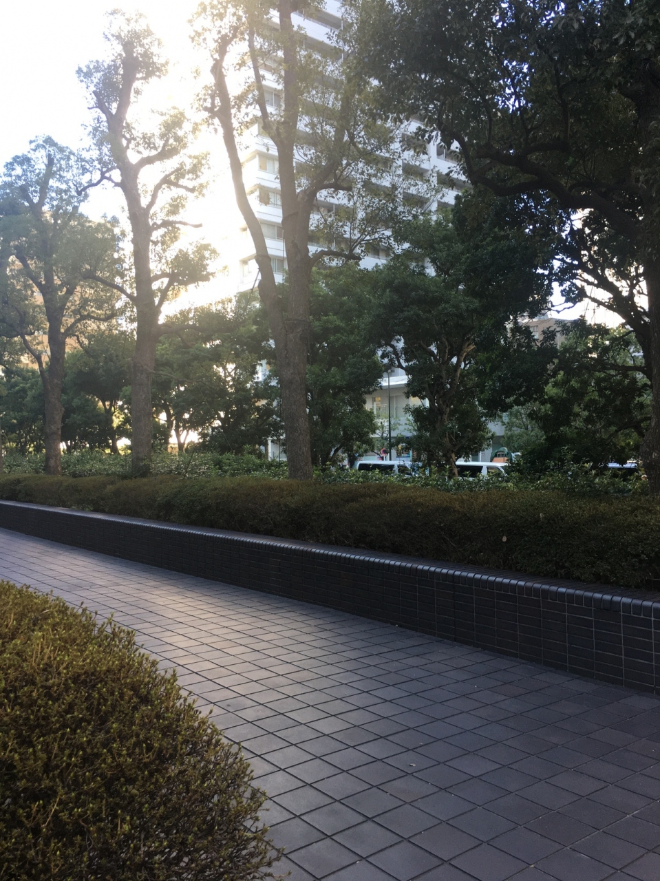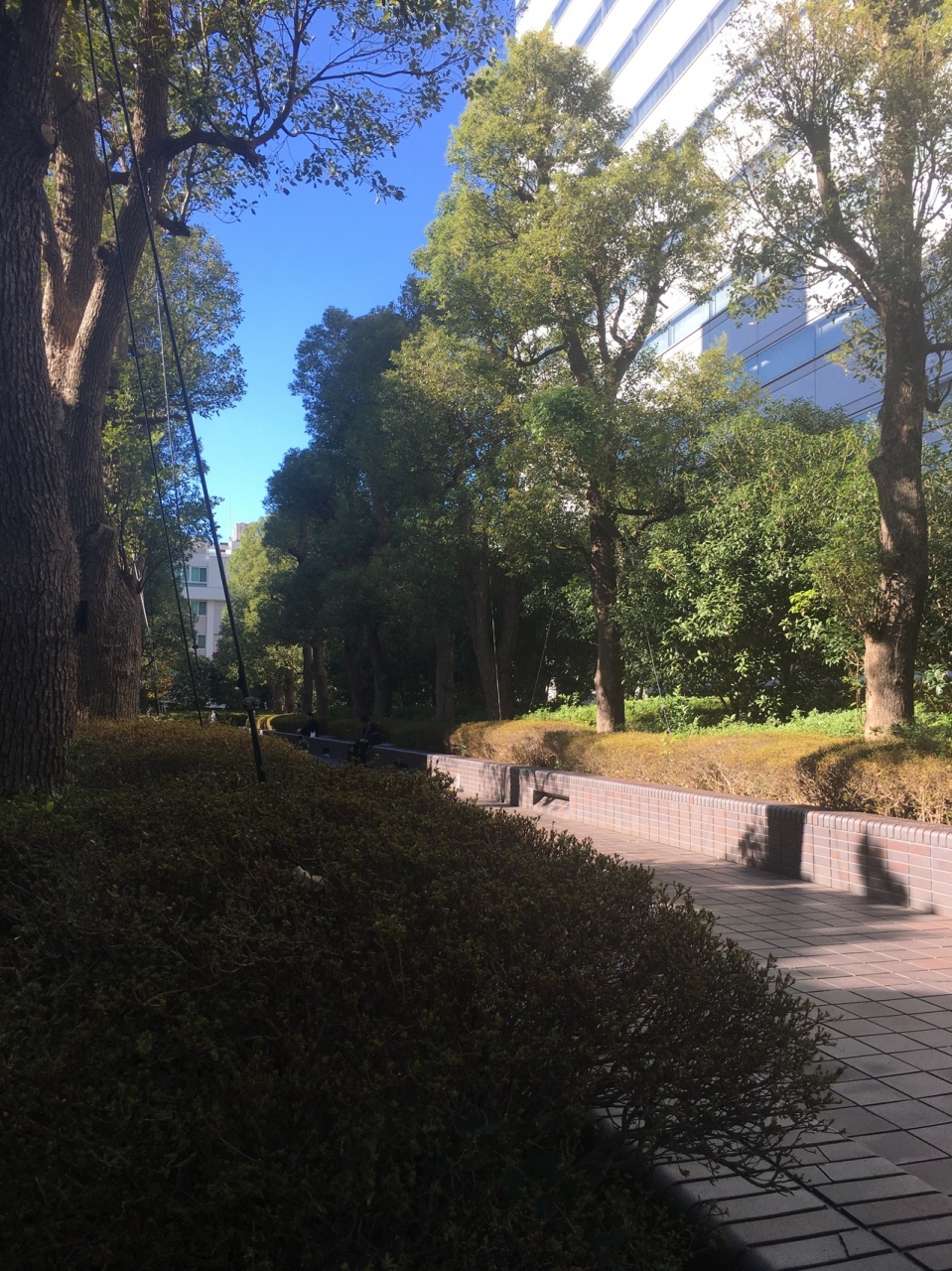 流石、世界のNECに相応しく超高層ビルで頑丈そうなビルでした。ビル内に飲食店があるのか行って見ましたがガードマンがいたので中に入るのはやめて、外からの見学のみにしました。メインの出入口はロータリーのような感じで、タクシー等が出入りでき、横にはお洒落な感じの寛げる場所がありました。