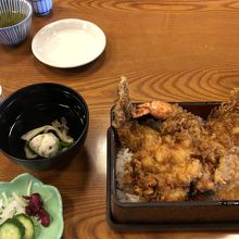 小田原駅から10分くらい歩いた場所にあります。建物は文化財らしく重厚な感じです。店内は広く昔ながらの食堂の雰囲気で従業員のおばちゃんがせわしなく動きまわってます。天丼が有名ですがお刺身や寿司など日本料理店です。ちょっと贅沢なこだわり天重をいただきましたが、サクサクでツユもしみていて美味しかったです。